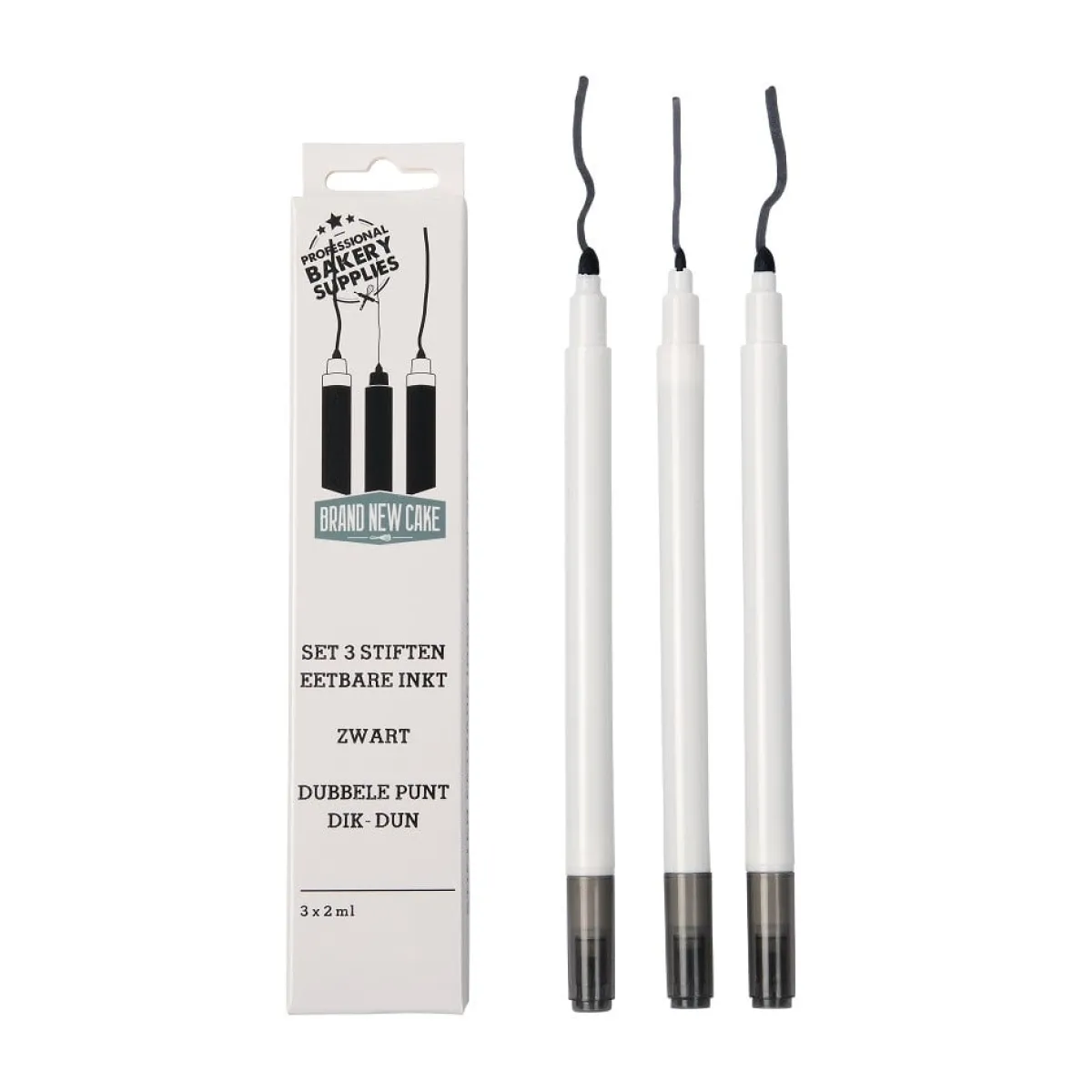 Brand New Cake Zwarte Stiften eetbare inkt set/3