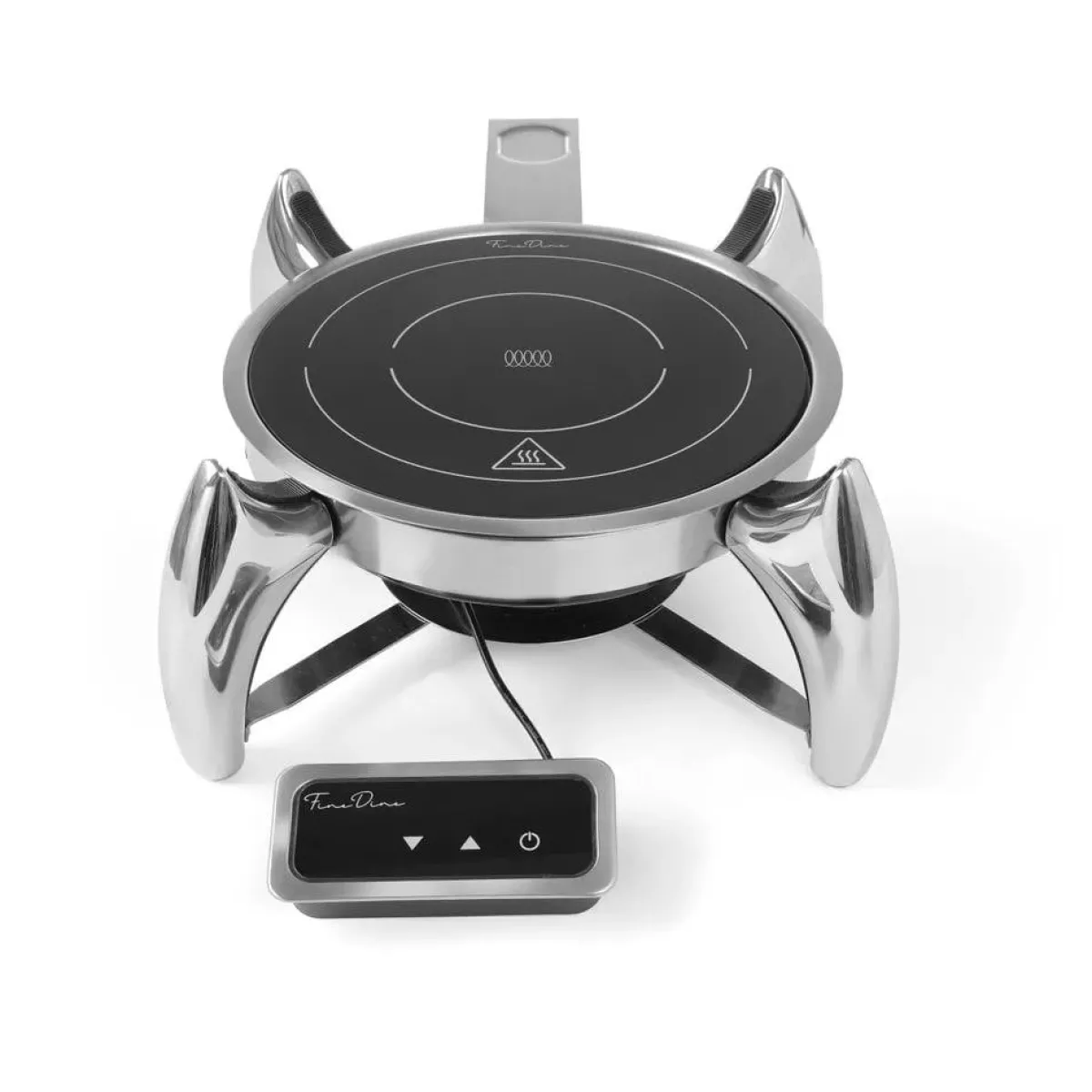 Zwart kristalglazen oppervlak en kunststof behuizing. Vermogensregeling instelbaar in 10 stappen, voorzien van elektronische oververhittingsbeveiliging. Bedieningspaneel met LED-display en aanraakbediening, kan verzonken worden gemonteerd. Uitermate geschikt om te gebruiken bij gebruik met bepaalde chafing dishes, controleer of uw chafing dish geschikt is. Uitermate geschikt om te gebruiken bij inbouw met de afzonderlijk verkrijgbare ring (239186).