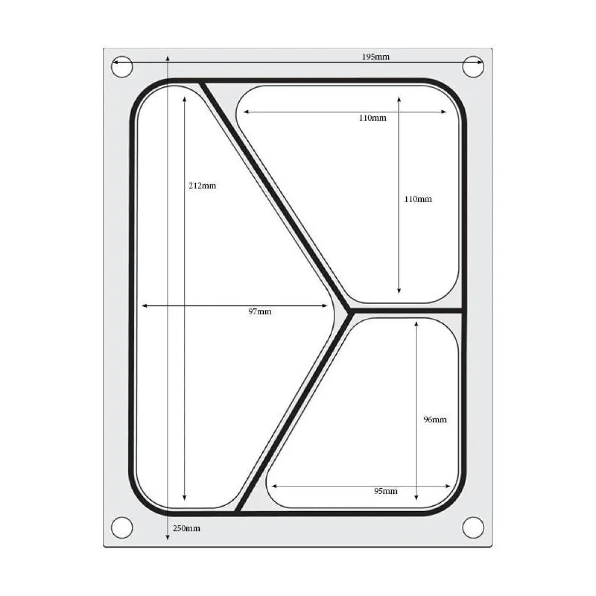 Deze uitvoering is vervaardigd uit Gemaakt van gepolijst aluminium. Zwarte siliconen afdichting.