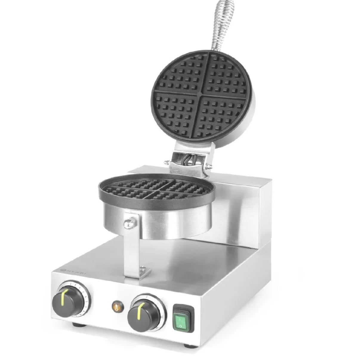 Bak heerlijke Belgische wafels met de Hendi Wafelmaker Rond. De bakplaten zijn gemaakt van gegoten aluminium met een Teflon® antiaanbaklaag, waardoor een wafel makkelijk eruit gehaald kan worden. Per uur kunnen er maximaal 20 wafels gemaakt worden, die elk een diameter van 19 centimeter en een hoogte tot 2,3 centimeter hebben. De wafels kunnen op minimaal 50˚C en maximaal 220˚C graden gebakken worden. We raden aan om de ijzers schoon te maken met een borstel.
