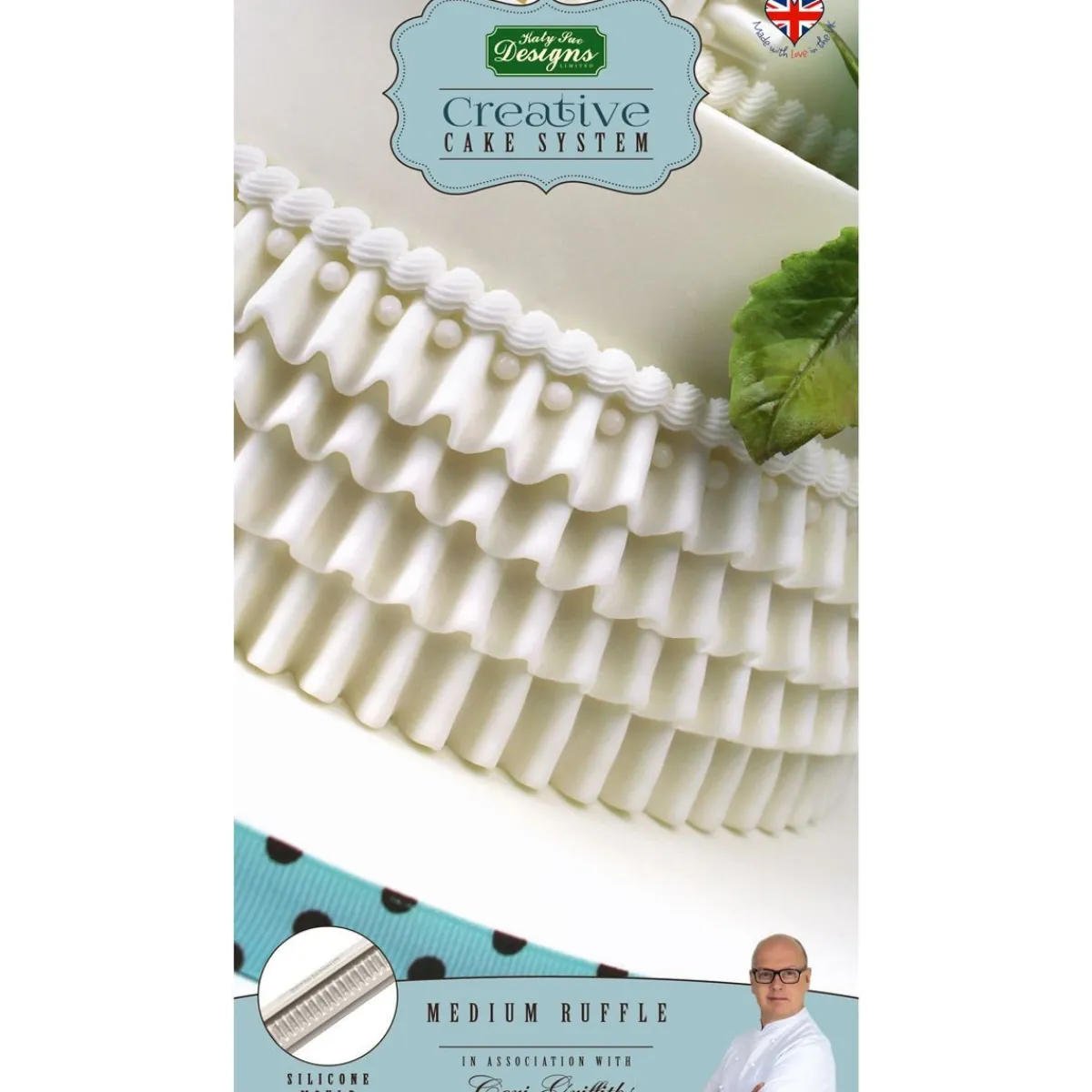 De ruches mold van Katy Sue is onderdeel van het Creative Cake System. De mold is ontwikkeld in samenwerking met cake ontwerper en internationaal docent Ceri Griffiths en is ideaal voor het maken van prachtige ruches voor op taarten en cupcakes. Het fijn gedetailleerde ontwerp van deze Katy Sue mold zorgt gegarandeerd voor een perfect resultaat.