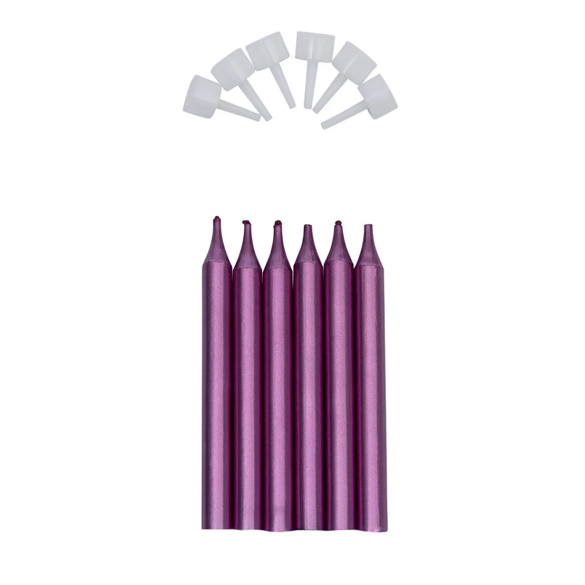Deze prachtige taartkaarsjes zijn perfect voor het afmaken van een verjaardagstaart. De kaarsjes hebben een mooie glanzende paarse kleur en beschikken over een houdertje.