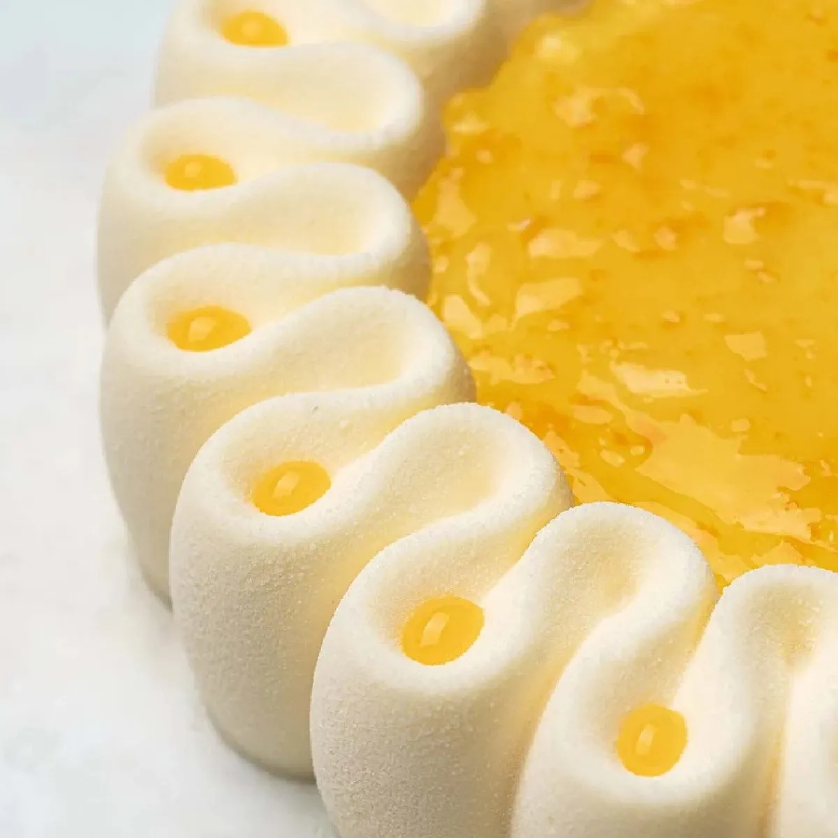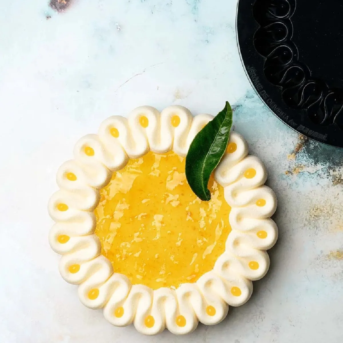 Deze vorm is geschikt voor het maken van moussetaarten, semifreddo’s, entremets en frisse fruitcreaties. De structuur maakt deze ook perfect om velvet sprays of glazuren op aan te brengen, maar ook naturel afgewerkt komt het patroon prachtig tot zijn recht.