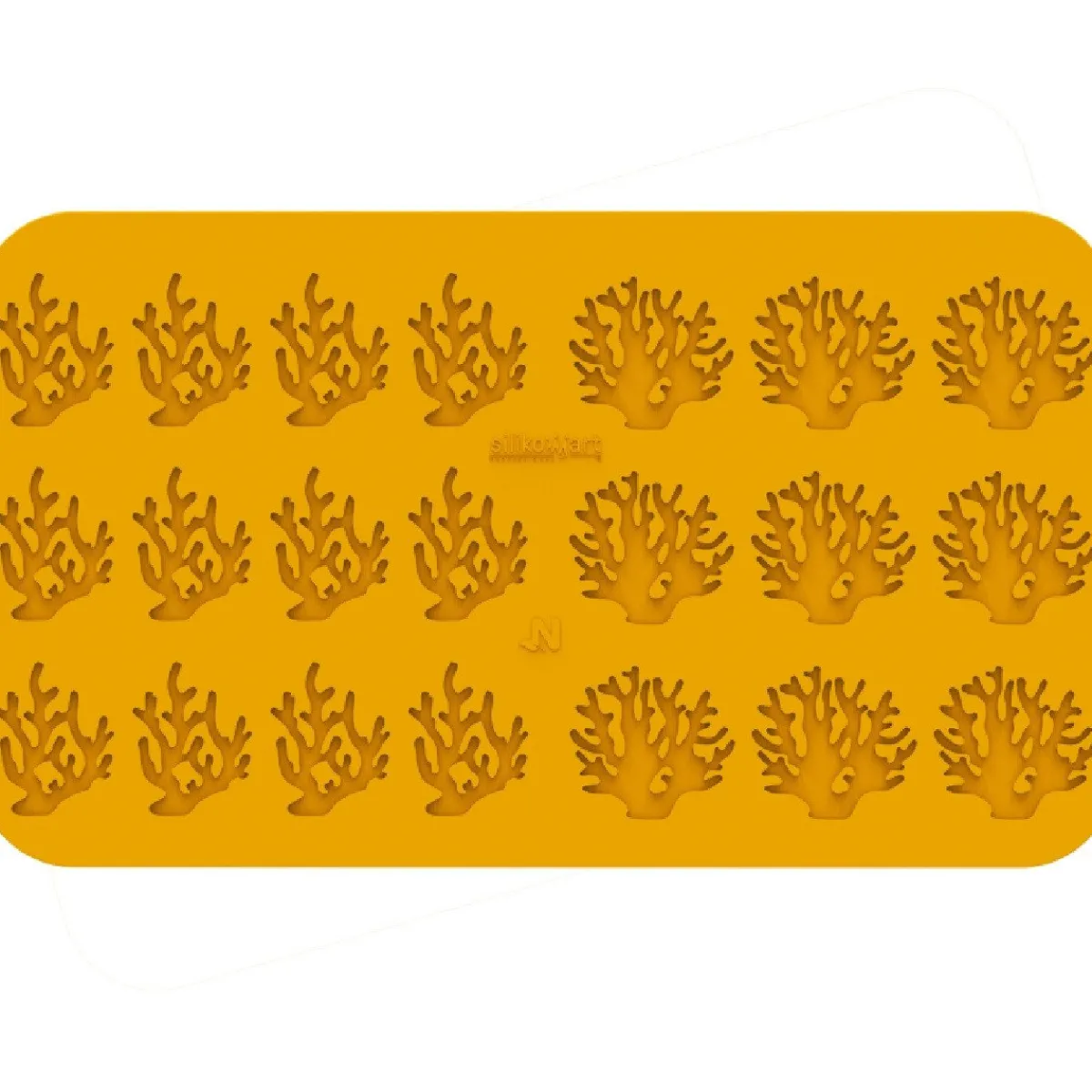 De Silikomart Siliconen Mat Coralla (21x) 5×6,3cm bestaat uit 2 verschillende designs, beide zijn koralen. De kleine koraal heeft een afmeting van 5 bij 6,3 centimeter en de grote is 6,8 bij 6,3 centimeter.