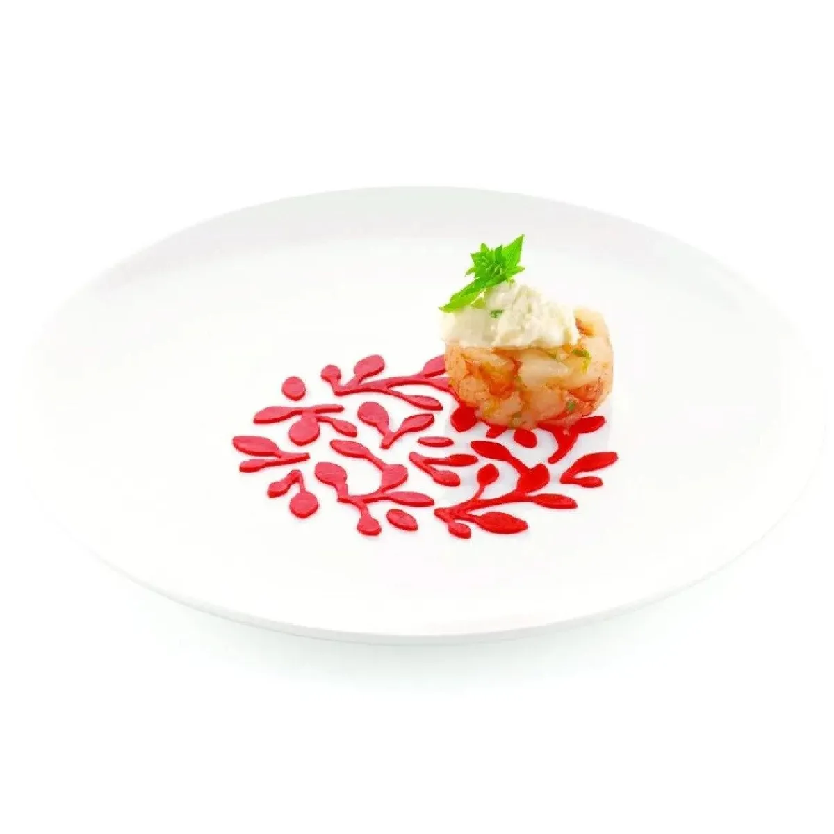 Deze set van 2 siliconen stencils maakt het eenvoudig om decoratieve patronen aan te brengen op taarten, desserts of borden. Ideaal voor het bestrooien met poedersuiker of cacaopoeder, maar ook geschikt voor het gebruik met gekleurde sprays of dunne sauzen.