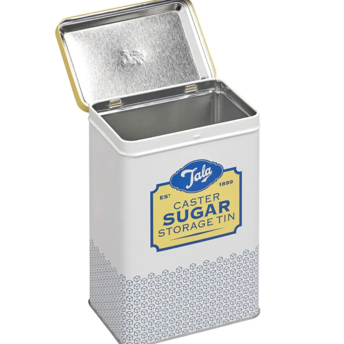 Dit Tala Bewaarblik Suiker 16,5×10,8×7,3cm is perfect om een voorraad suiker in op te slaan en staat ook nog eens prachtig in de keuken. Het bewaarblik heeft een retro uitstraling en sluit gemakkelijk door de scharnierendeksel. De voorraaddoos is 16,5 centimeter hoog, heeft een breedte van 10,8 centimeter en een diepte van 7,3 centimeter.