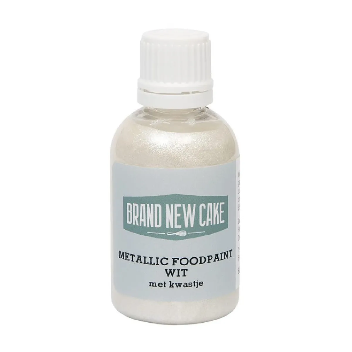 BrandNewCake Metallic Food Paint Wit met Kwastje 60g