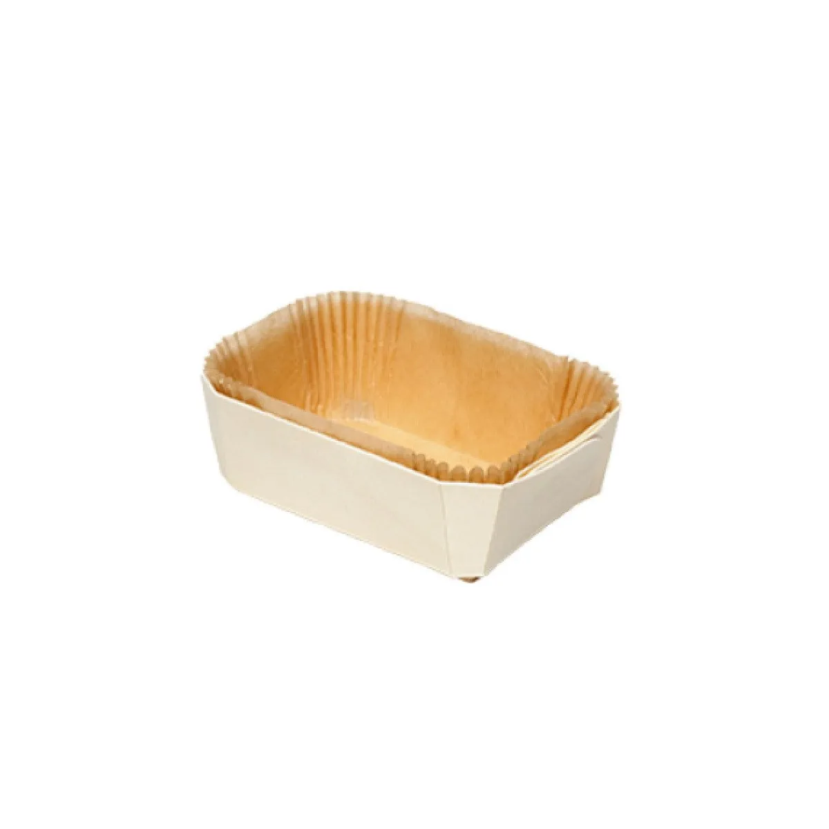 Bakvorm Hout Rechthoek 14×9,5x5cm + Bakpapier (per stuk)