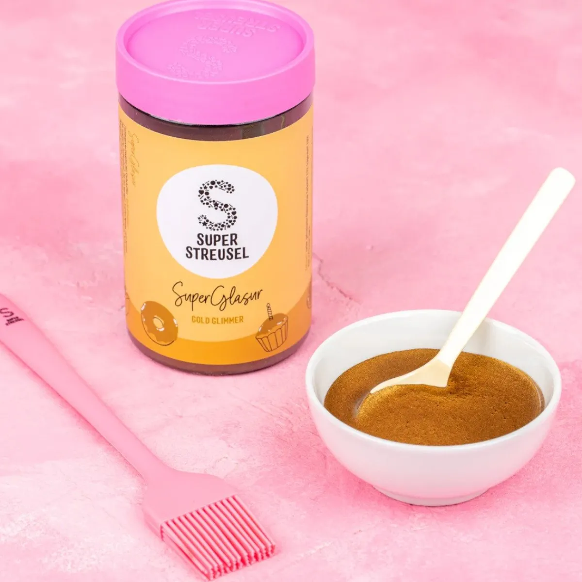 Deze SuperGlaze Goud Glimmend Poeder 175g geeft een prachtig én feestelijk effect aan je lekkernijen. De poeder vermeng je met vloeistof, zodat er een glazuur ontstaat. Dit kun je doen met water, maar wil je een smaak toevoegen? Gebruik dan vruchtensap.