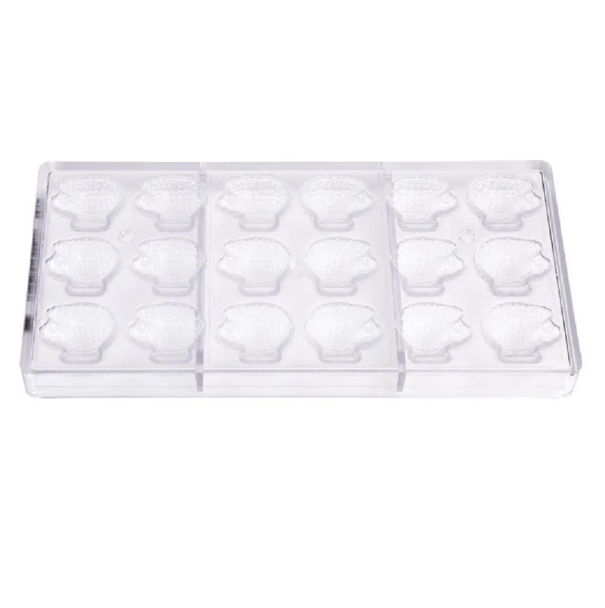 Met de Chocolademal Chocolate World Schaap (18x) 37,5x32x12,5mm kun je bonbons maken die de vorm van een schaap hebben hebben. Dankzij de vorm, is het mogelijk om maar liefst 18 chocolaatjes tegelijk te maken. Deze bonbonvorm is gemaakt van hoogwaardige kwaliteit polycarbonaat.