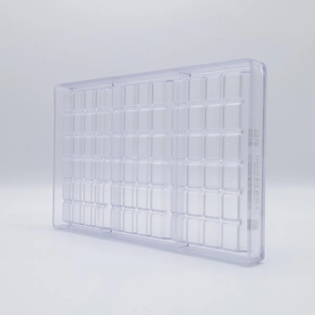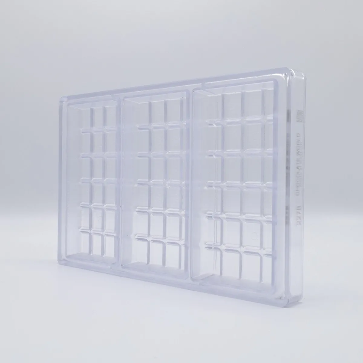 De Chocolademal Chocolate World Tablet (3x) 155x77x19mm heeft holtes voor 3 repen. De klassieke tablet vorm heeft per reep een lengte van 15,5 centimeter, een breedte van 7,7 centimeter en een hoogte van 1,9 centimeter.