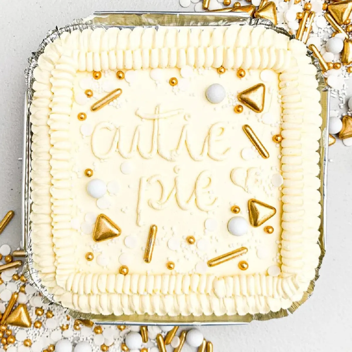 Prachtig om afgesmeerde taarten een finishing touch te geven of om cupcakes feestelijk af te werken. De mix bestaat onder ander uit gouden en witte triangels, confetti, bolletjes en staafjes.