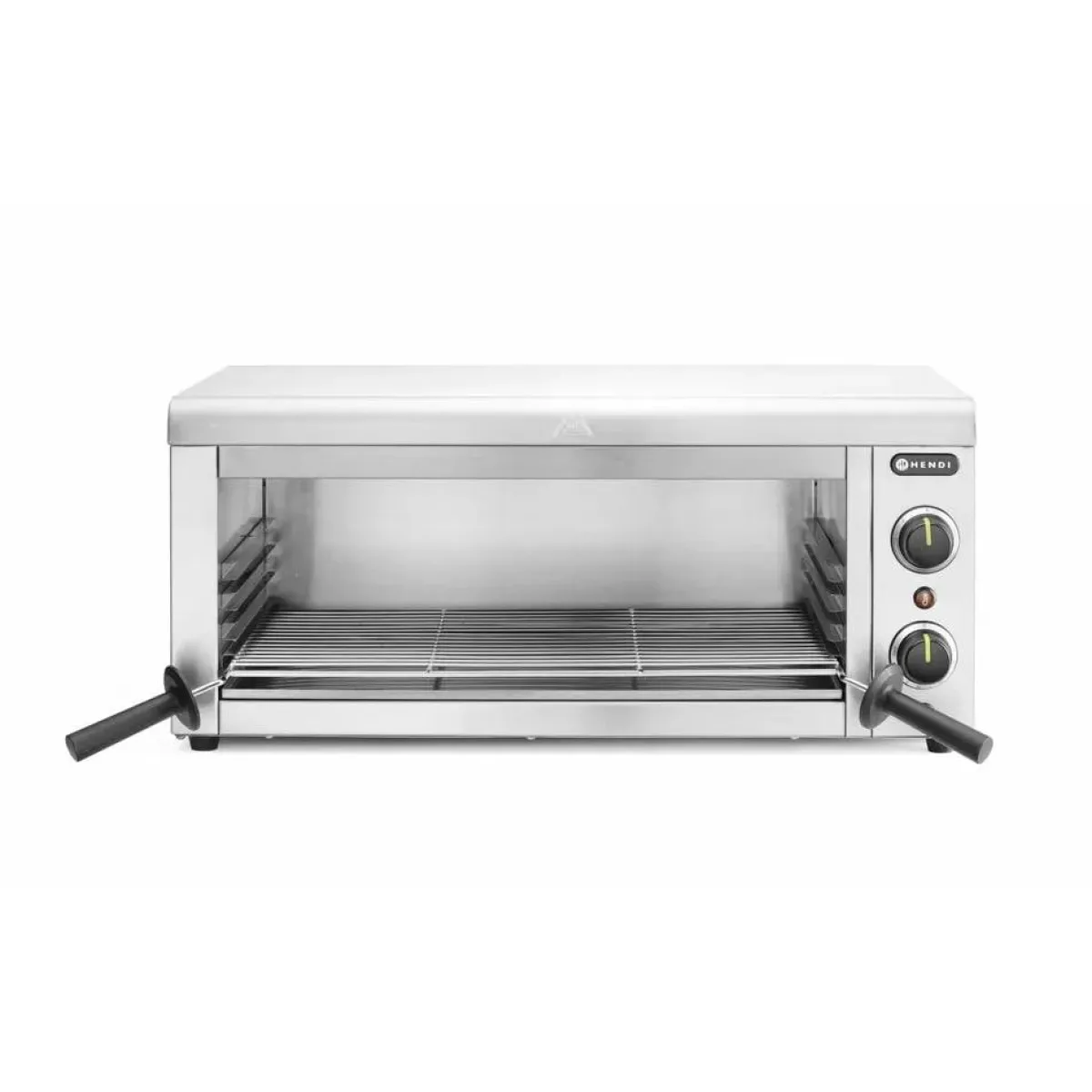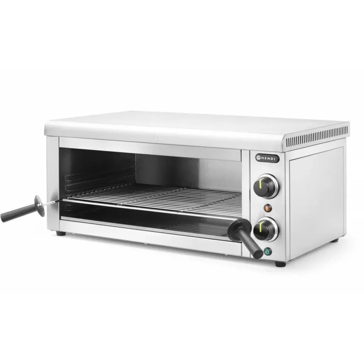 De HENDI Salamander 1/1 GN is ideaal voor snel en gelijkmatig verwarmen, grillen en roosteren. De hoogte van het rooster kan worden aangepast op 4 verschillende niveaus. De salamander wordt geleverd met een rooster en verwijderbare kruimellade voor eenvoudige reiniging.