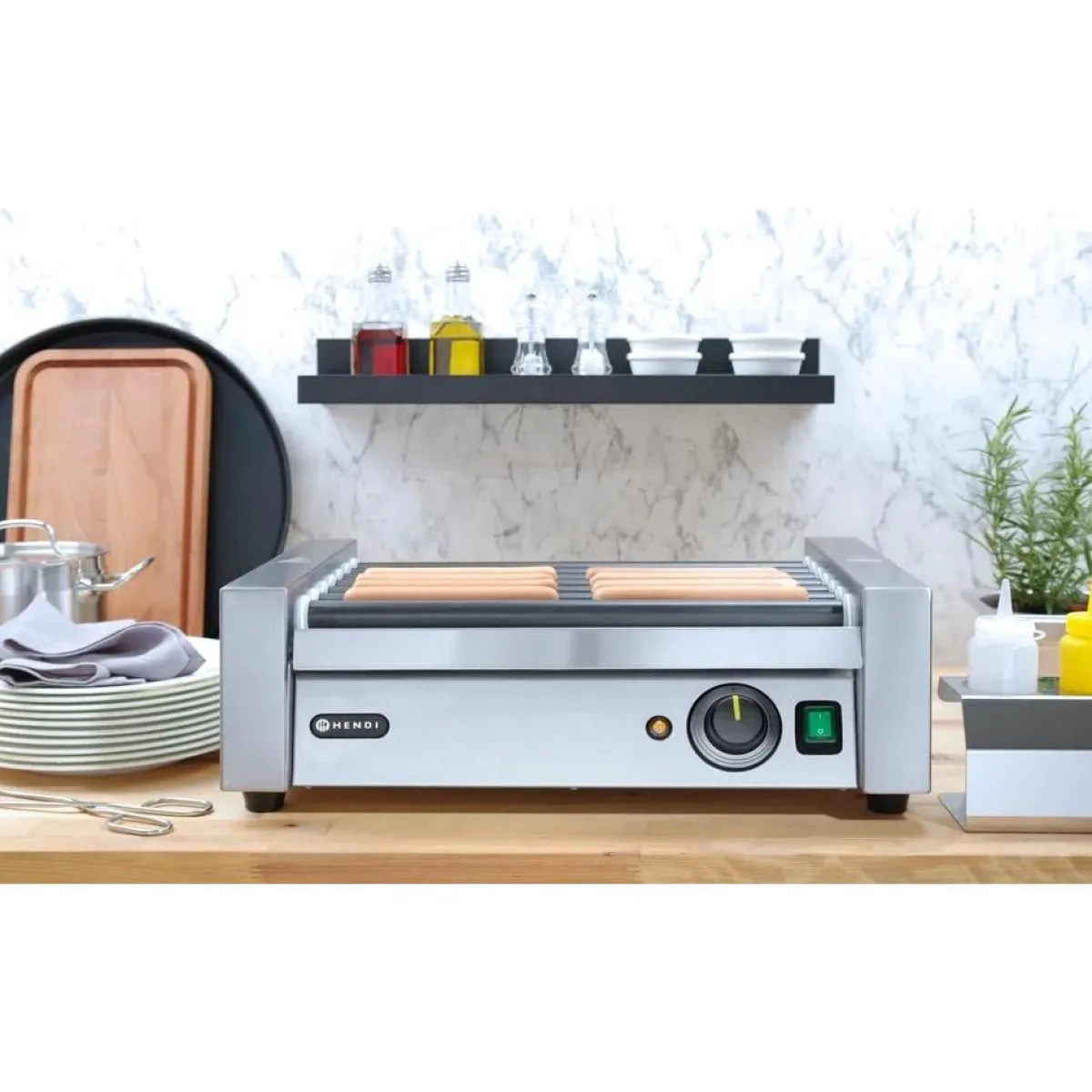Hendi Worstenroller grill – één zone 7 rollers