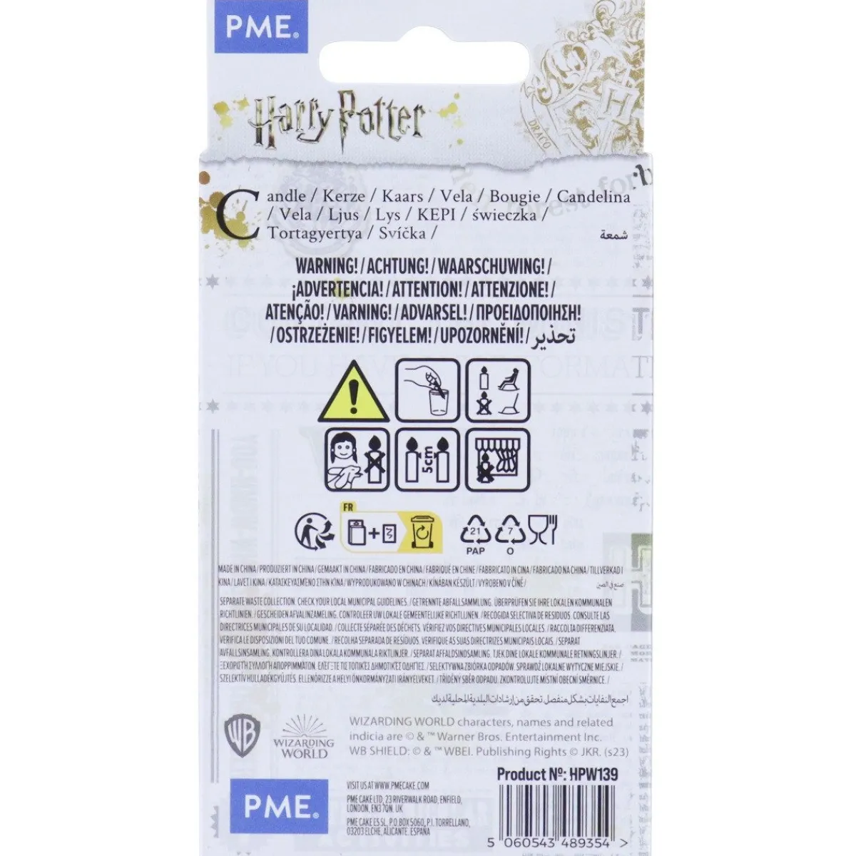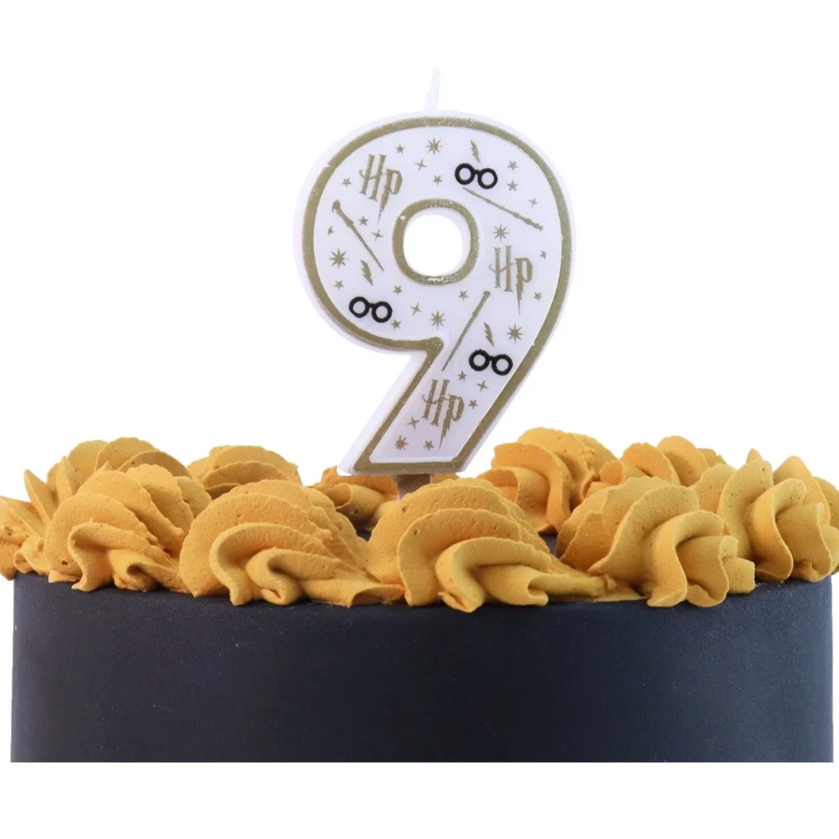 Het PME Harry Potter Taartkaarsje 9 is een prachtig nummerkaarsje in een Harry Potter thema. Deze kaars heeft een witte ondergrond met daarop Harry Potter kenmerken. Zo staan er onder andere toverstafjes, brillen en logo’s op. Dit kaarsje is perfect voor het decoreren van voor taarten, cupcakes of desserts. Met de houten stok aan de de onderkant, prik je de kaars makkelijk in het baksels. De kaars heeft een afmeting van 5,3 bij 7 cm, dit is exclusief de houtenstok.
