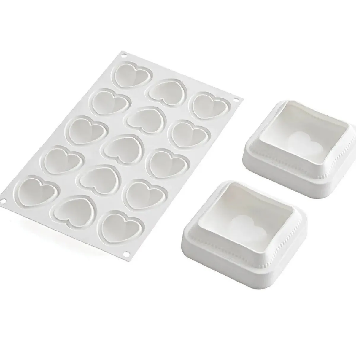 Silikomart Siliconen Kit Hartjes (15) 4,5×4,4cm / 10x10cm