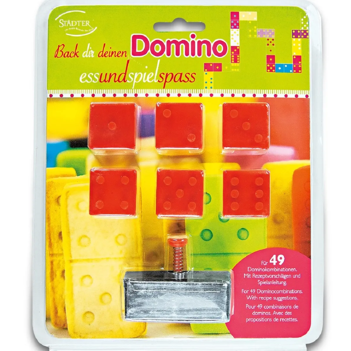 Met de Städter Plunger Cutter Domino Verwisselbaar Set/14 kun je zelf domino stukjes creëren. Je kunt met deze set 43 verschillende steentjes maken. Prachtig om met koekjes een domino spel te creëren of om de fondant domino stukjes uit te steken en hiermee je baksel te versieren.