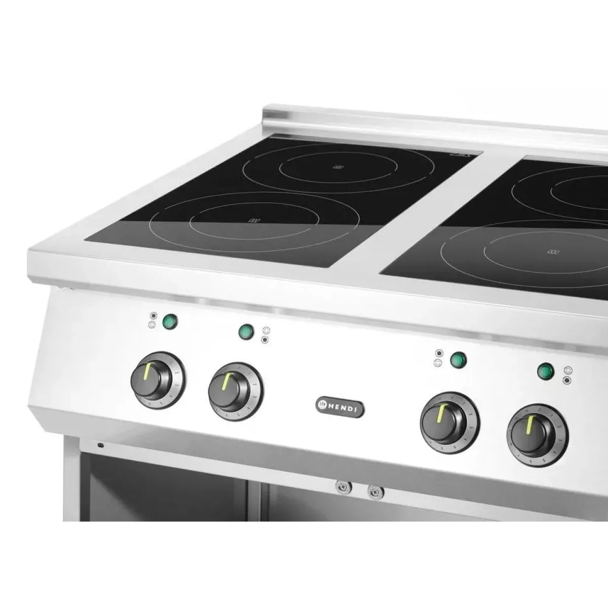 HENDI inductiefornuis 4-pits voldoet aan de verwachtingen van de meest veeleisende chef-koks. Hoog vermogen – dient aangesloten te worden op 400 V, het fornuis heeft twee inductiekookplaten van 5 kW en twee inductiekookplaten van 3,5 kW.