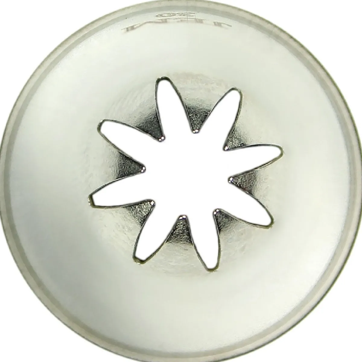 Roestvrijstalen spuitmondje van JEM, van zeer goede kwaliteit. Het spuitmondje bestaat uit één stuk, dus er zijn geen lasnaden aanwezig. Geschikt voor fijn spuitwerk, op bijvoorbeeld koekjes. Met dit spuitmondje kan je bijvoorbeeld stervormige creaties maken.