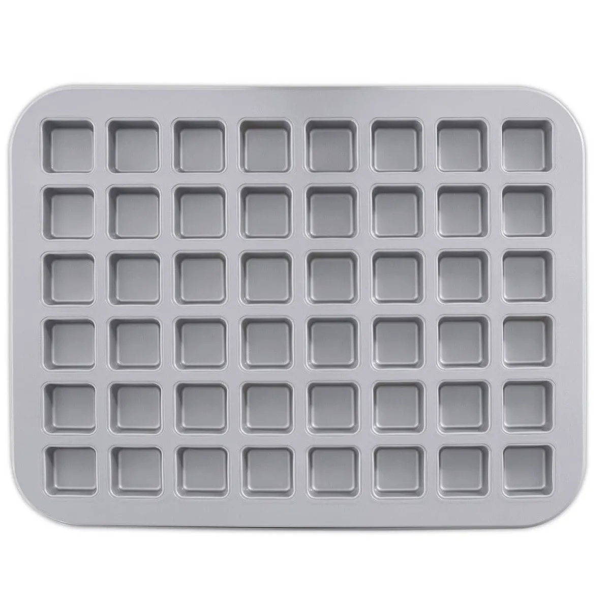 Bakvorm voor het maken van mini brownies. Dit bakblik is ook te gebruiken voor andere soorten cake en is bovendien erg leuk om chocolade mee te maken. De vorm is gemaakt van metaal en biedt ruimte om in één keer 48 mini brownies te bakken.