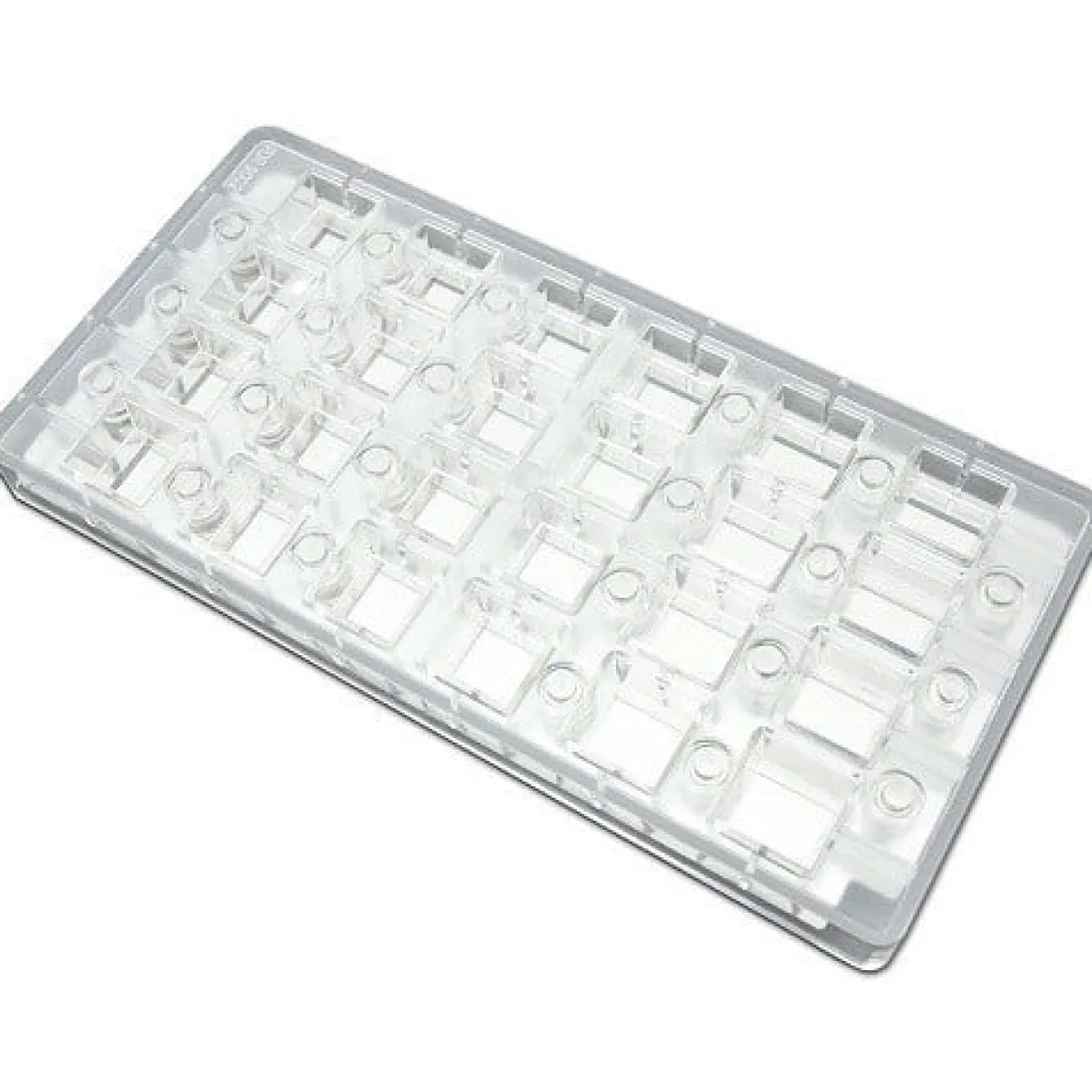 Samen met onze chocoprint bonbonformaat sheets maak je met deze vorm zeer eenvoudig superstrakke bonbons met daarop je zelf ontworpen afbeelding. Deze transparante bonbonvorm is gemaak van 100% virgin polycarbonate. Deze harde vormen zijn uitstekend vast te houden, eenvoudig af te strijken en de bonbons laten tevens eenvoudig los. Vorm afwassen met heet water.