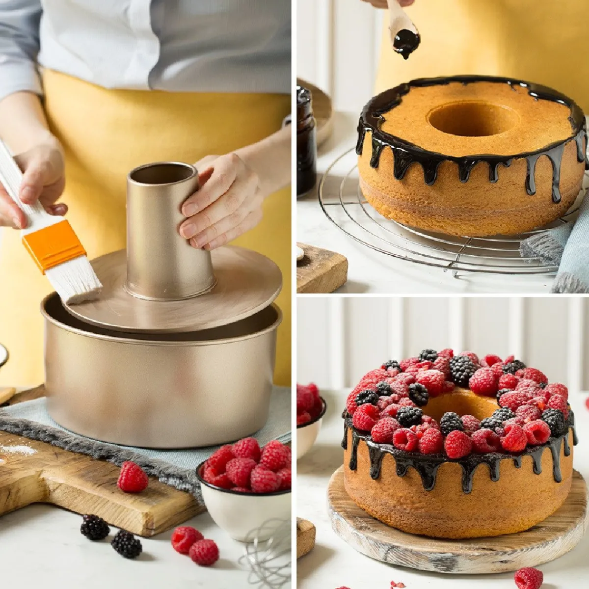 Met de Bakvorm Chiffon Ø20,5x10cm kun je een heerlijke chiffon cake maken. Een chiffon cake is een luchtige cake, wat heerlijk smaakt bij onder andere een kopje koffie of thee. Uiteraard kun je een chiffon cake helemaal naar wens maken. Maak bijvoorbeeld eens een pandan cake (pandan chiffon cake) in de Bakvorm Chiffon Ø20,5x10cm of een frisse cake met sinaasappelsmaak.