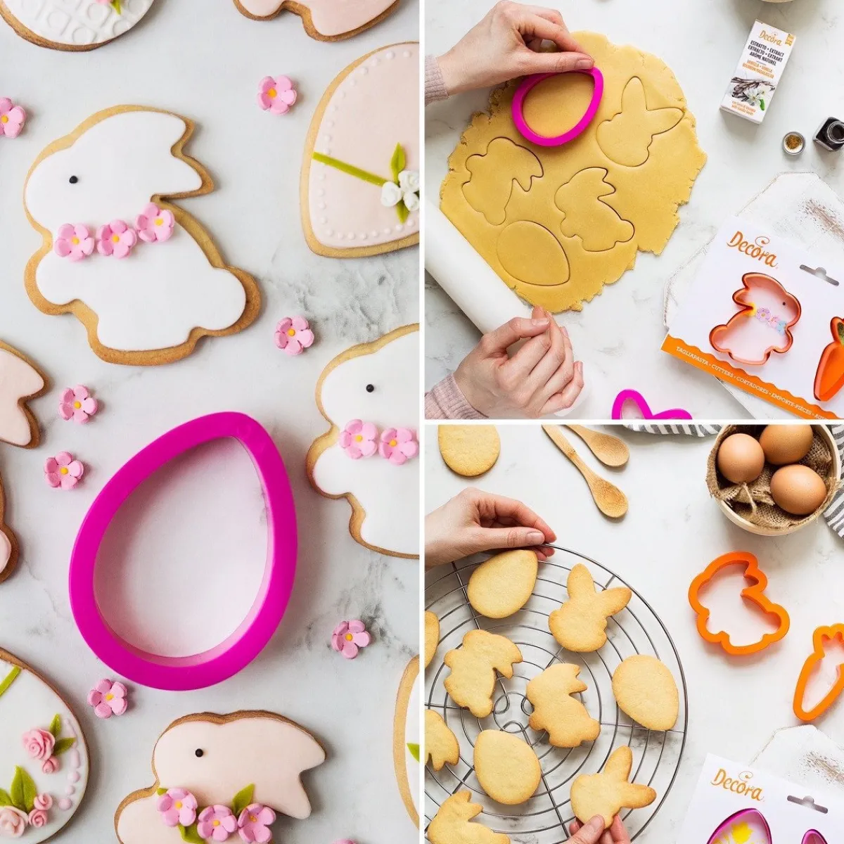 Laat de konijnen de eieren maar verstoppen, want met deze uitstekers maak je zelf heerlijke lekkernijen in de vorm van een konijnen en eieren. Steek met de Koekjes Uitsteker Konijn en Ei makkelijk en snel de mooiste en lekkerste koekjes, chocolaatjes en decoraties uit. Decoreer je figuren eventueel nog met royal icing, chocolade of andere decoratiemateriaal.