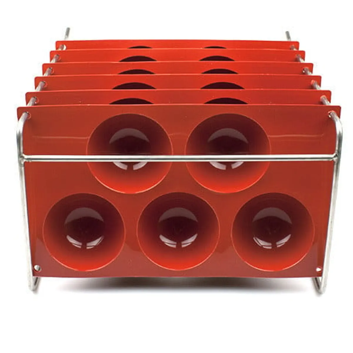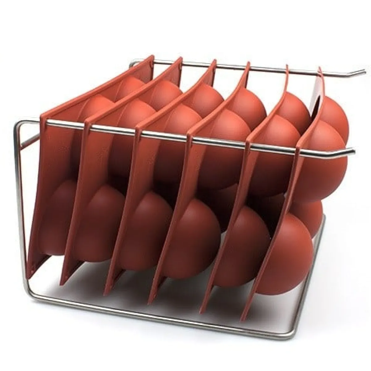 Dit droogrek is gemaakt voor alle siliconen vormen (Siliconflex) waarvan het artikelnummer begint met SF. Je kunt deze herkennen aan de oranje kleur. Deze vormen hebben een afmeting van 20×30 cm en zijn voorzien van gaatjes in de hoeken, zodat ze gemakkelijk opgehangen kunnen worden.