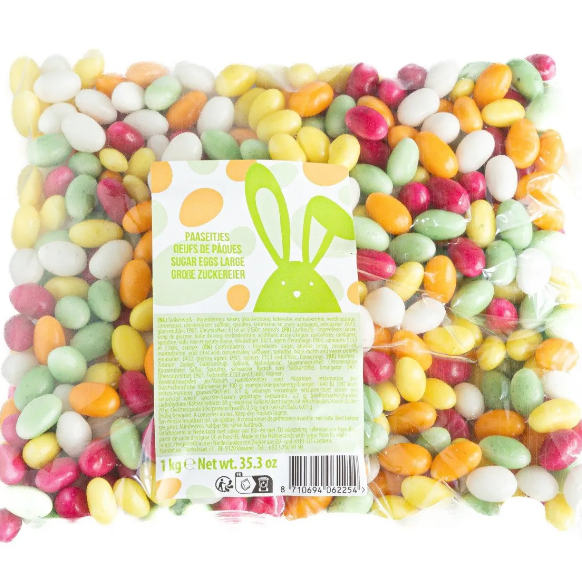 Deze Gebakseitjes Pasen Groot 1kg zijn perfect op alle paasbaksels. De paaseitjes hebben een zoete smaak en een lekkere bite. Bovendien komen de eitjes in super vrolijke kleuren, zoals geel, oranje en wit. Verder worden de eitjes geleverd in een verpakking van 1 kilogram.
