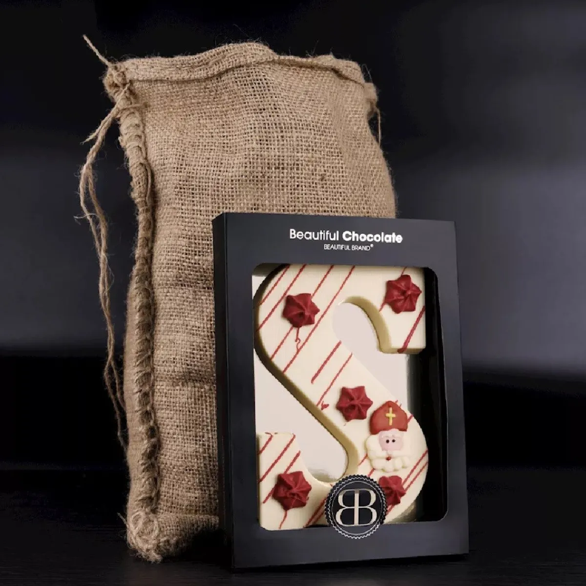 De Luxe Chocoladeletter Wit -Letter S- 220g is gemaakt van heerlijke witte chocolade en gedecoreerd met streepjes, toefjes en een sinterklaas decoratie. Ontzettend leuk om iemand mee te verwennen of als schoencadeautje te gebruiken. Uiteraard kun je er zelf ook van genieten.