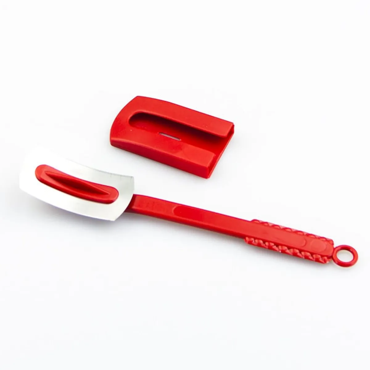 Dit broodmesje wordt standaard geleverd in de kleur rood en beschikt over een beschermkapje.