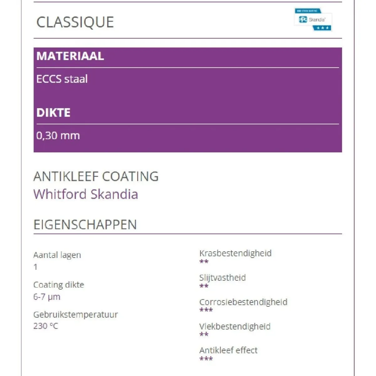 - Dikte: 0,30mm