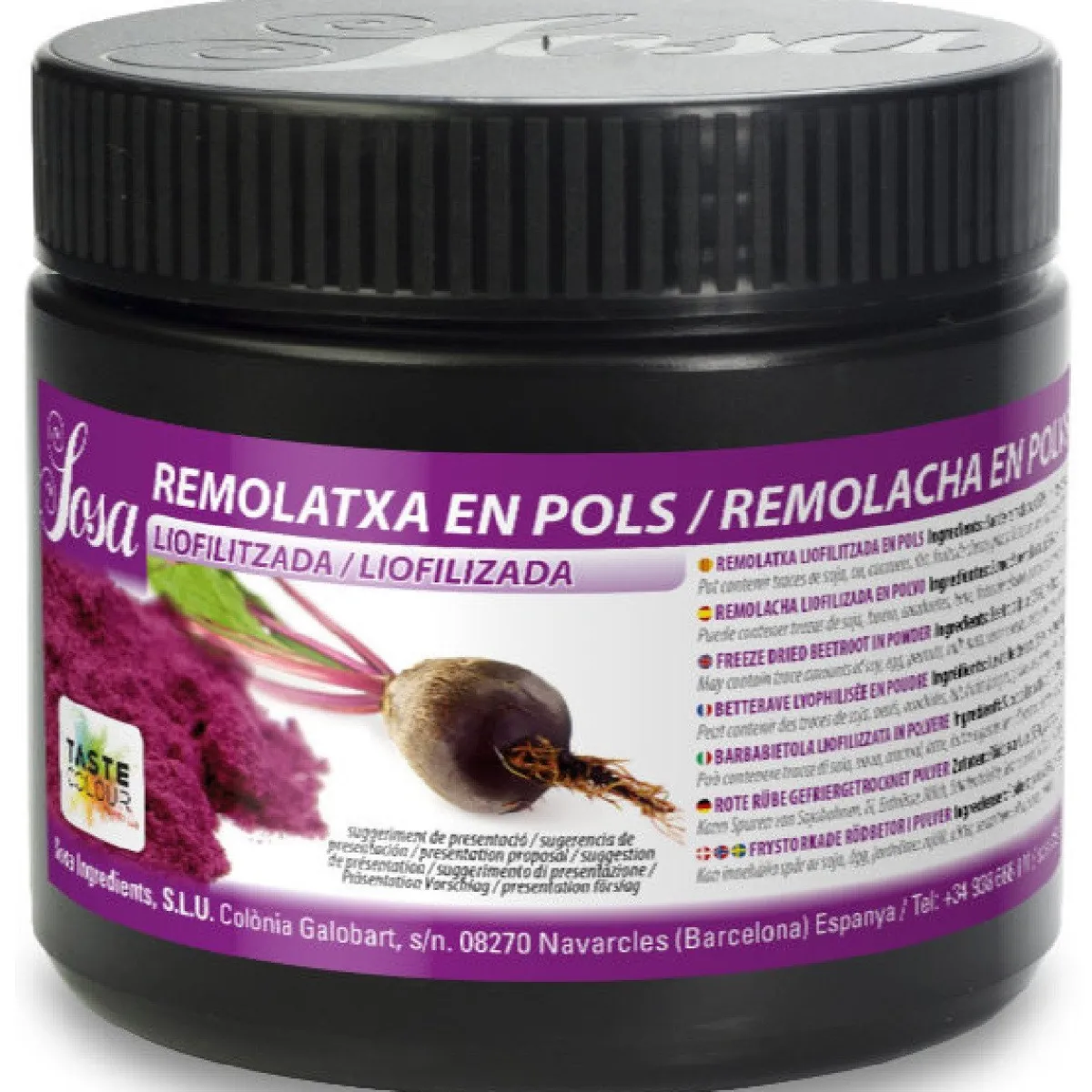 Het Sosa Gevriesdroogd Poeder Biet 300g kan gebruikt worden als smaakmaker, maar ook als kleurstof. Het poeder bestaat uit natuurlijk poeder en komt in een hersluitbare pot. Deze pot heeft een inhoud van 300 gram.