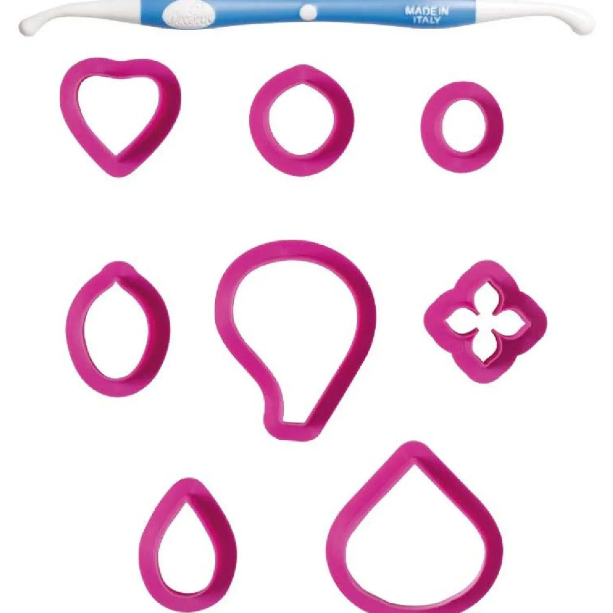 De Koekjes Uitstekers Decoreerset Zomer 9st. bestaat uit uitstekers van bloem onderdelen. Met de set kun je de mooiste bloem versiersels creëren. Perfect om fondant decoraties te maken. Tevens bevat de set een boetseerstaafje, zodat je nauwkeurig te werk kunt gaan.