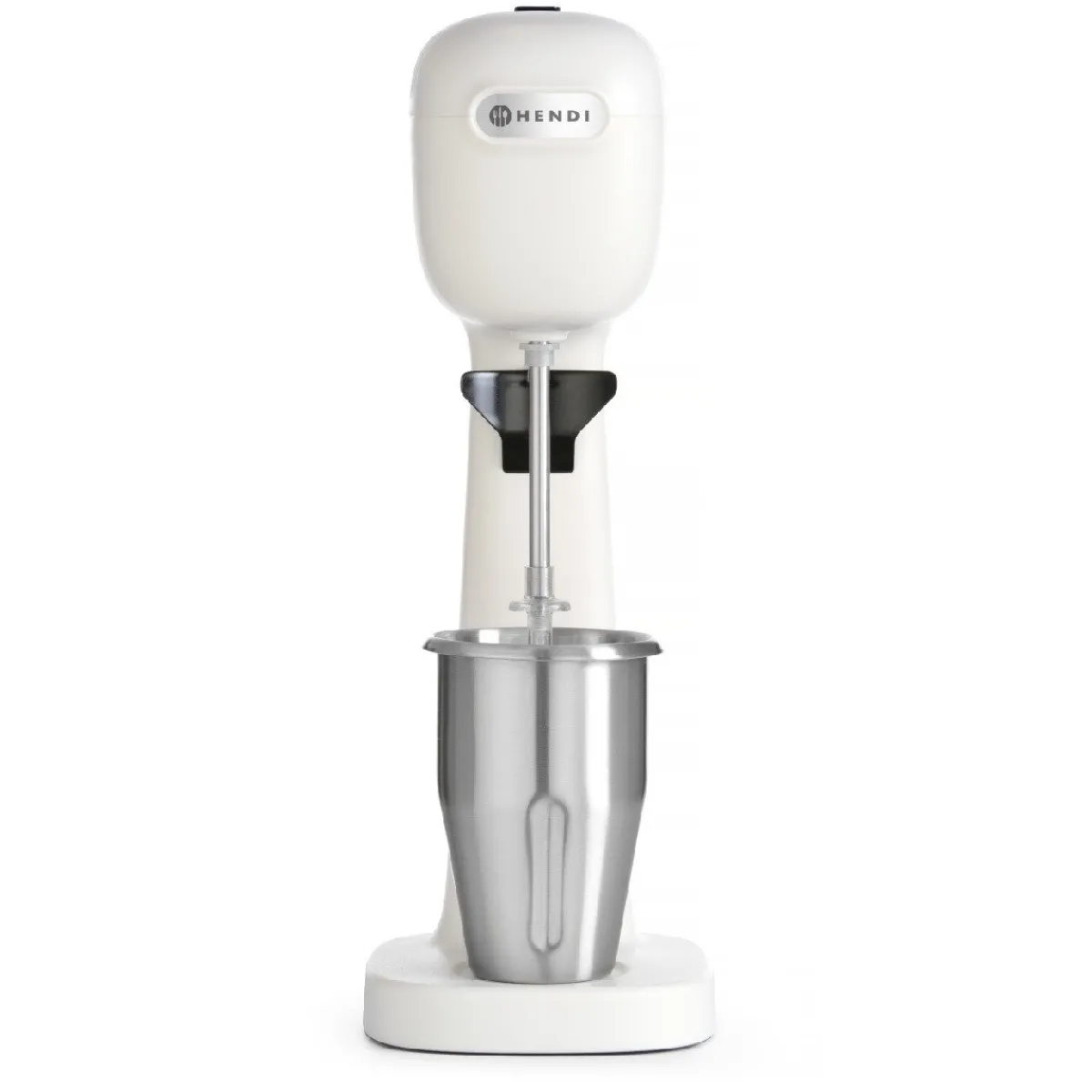 De Hendi Milkshaker Wit is ontworpen door Robert Bronwasser. Je kan met dit apparaat niet alleen heerlijke milkshakes maken, maar ook frappés en Freddo cappuccino’s. De milkshake maker is verzwaard en heeft rubberen pootjes voor een goede stabiliteit. Bij gebruik kun je twee snelheden gebruiken, namelijk: 15.000 en 19.000 RPM. De snelheden kun je met de schakelaar aan de bovenkant bepalen. Daarnaast heb je ook nog de keuze uit twee roerders om de hoeveelheid lucht te regelen. De milkshake maker wordt geleverd met een RVS mengbeker (0,95 liter), een polycarbonaat mengbeker (0.9 liter) en twee sets van twee roerders.