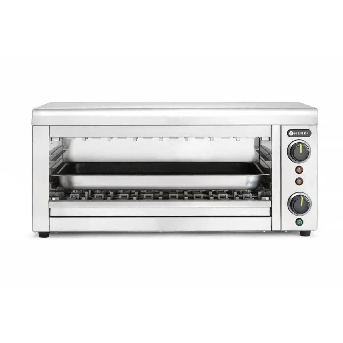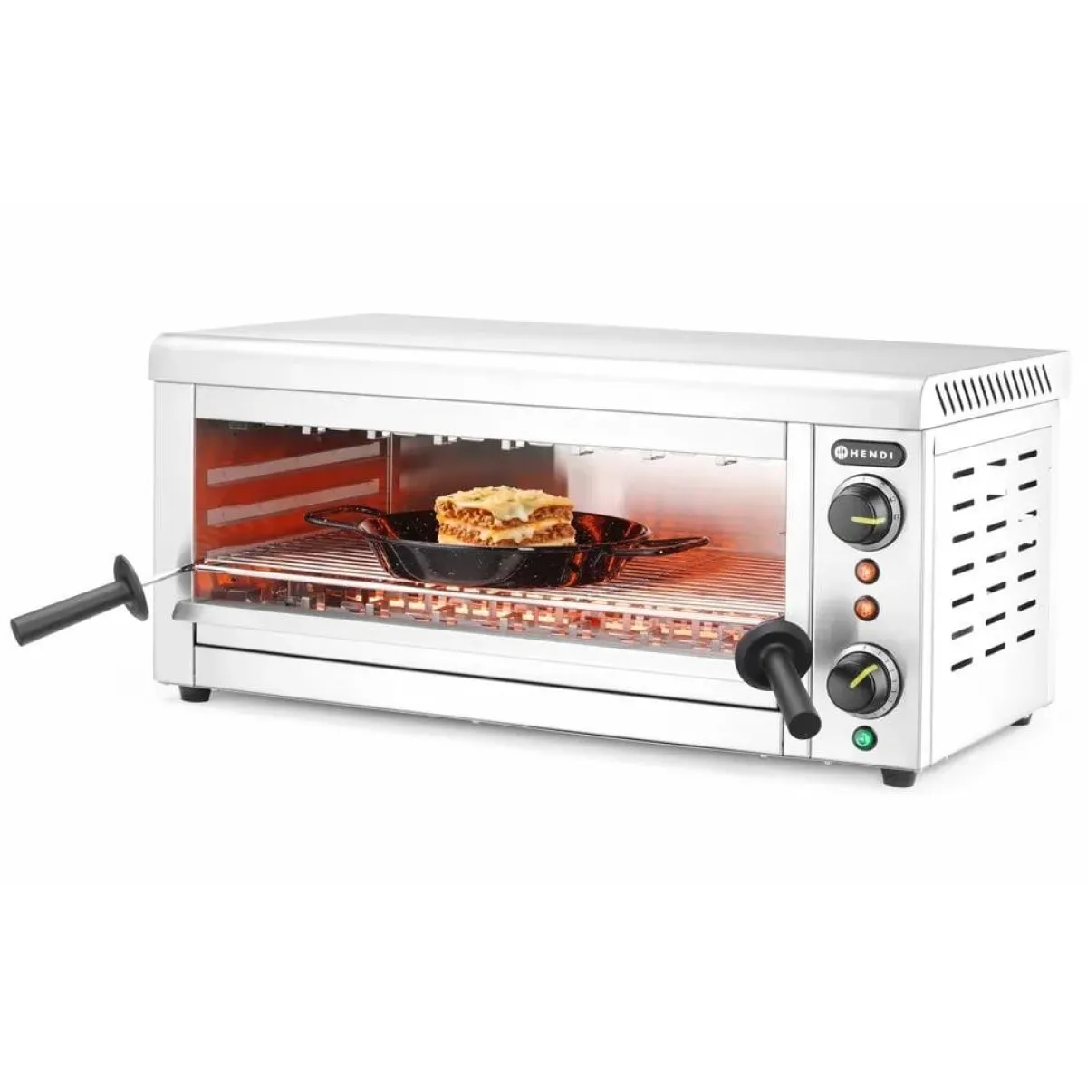 Het is mogelijk GN 1/1 trays in de kamer te plaatsen. Ideaal om mee te grillen of gerechten mee te verwarmen. Met Quartz infrarood verwarmingselement onder & boven. Voorzien van 15 minuten timer en controlelampjes. Rooster in 3 hoogtes verstelbaar en voorzien van hitteschild. Met kruimellade. Voldoet aan IPX3 norm.