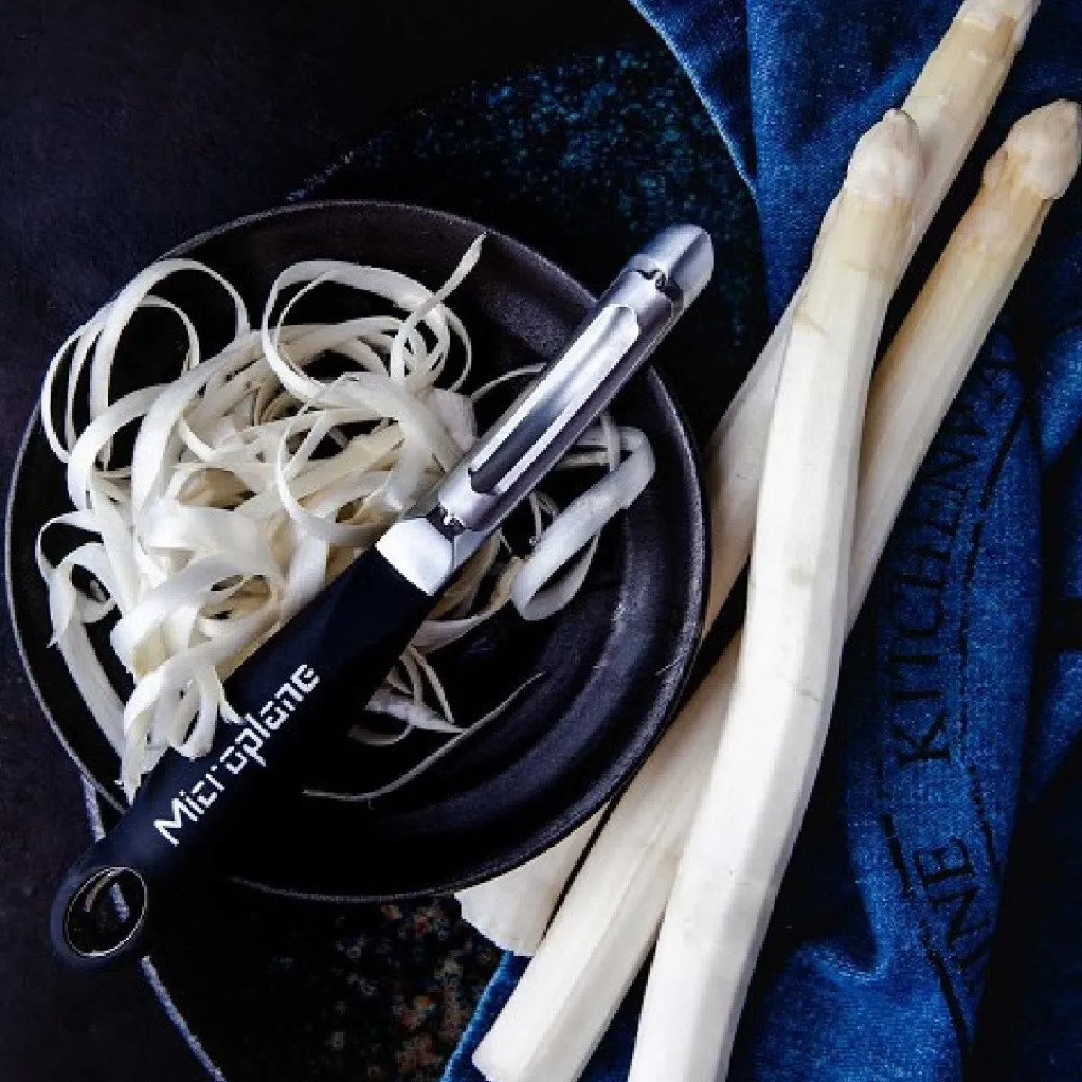 De Microplane Dunschiller is een ontzettend handig hulpmiddel bij het schillen van groenten en fruit. Binnen no-time zijn je aardappels, courgettes, komkommers en zelfs asperges geschild!