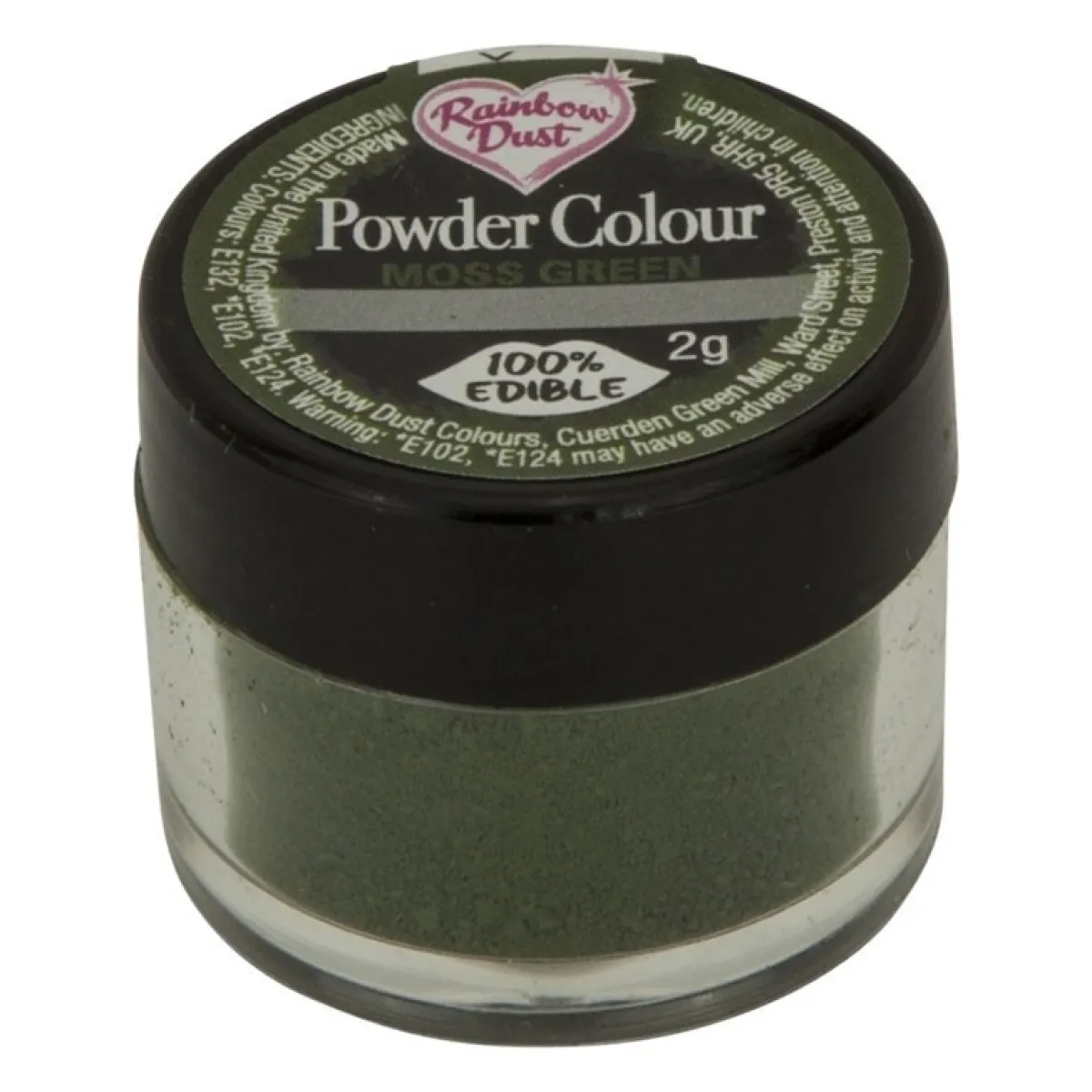 Zo groen als mos, geef je decoratie deze prachtige bosachtige kleur met deze kleurpoeder van het merk Rainbow Dust. Je kunt creaties met dit product droog afstoffen, maar je kunt er ook matte verf mee maken. Versier je cupcakes, taarten en andere lekkernijen met de RD kleurpoeders en maak van elk baksels en echt kunstwerk.