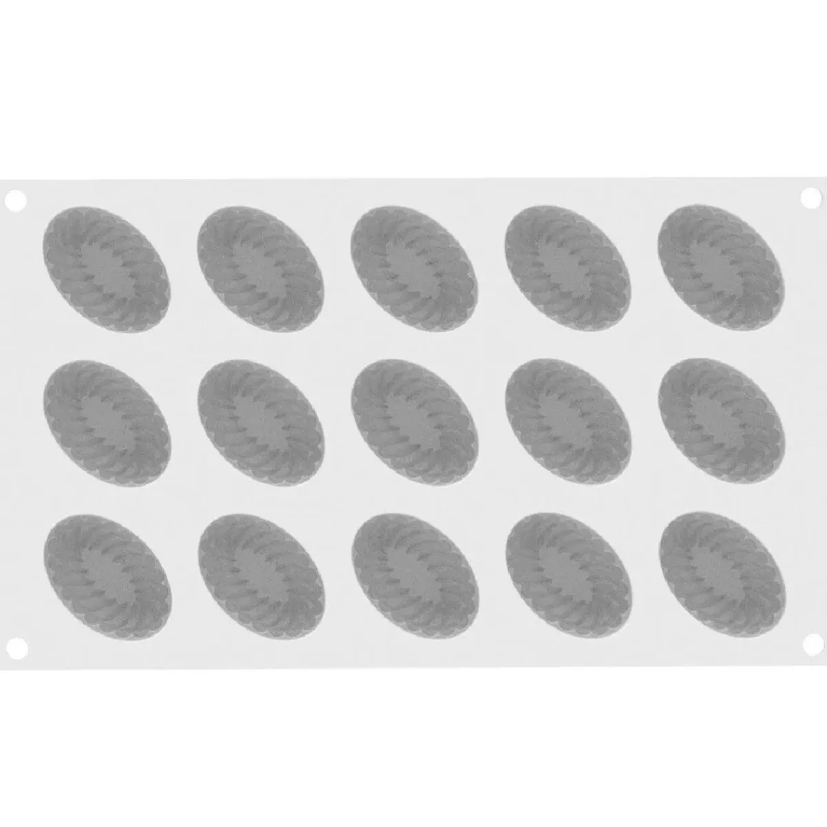 Maak prachtige creaties in de Silikomart Siliconen Bakvorm Pleincoeur Ovaal (15) 53x36mm. Deze bakvorm bevat 15 gedetailleerde holtes in een ovale vorm met een verfijnd reliëfpatroon. Perfect voor het maken van 1-persoons gebakjes zoals moussecreaties, mini-cakes, semifreddo’s en luxe chocoladedesserts.