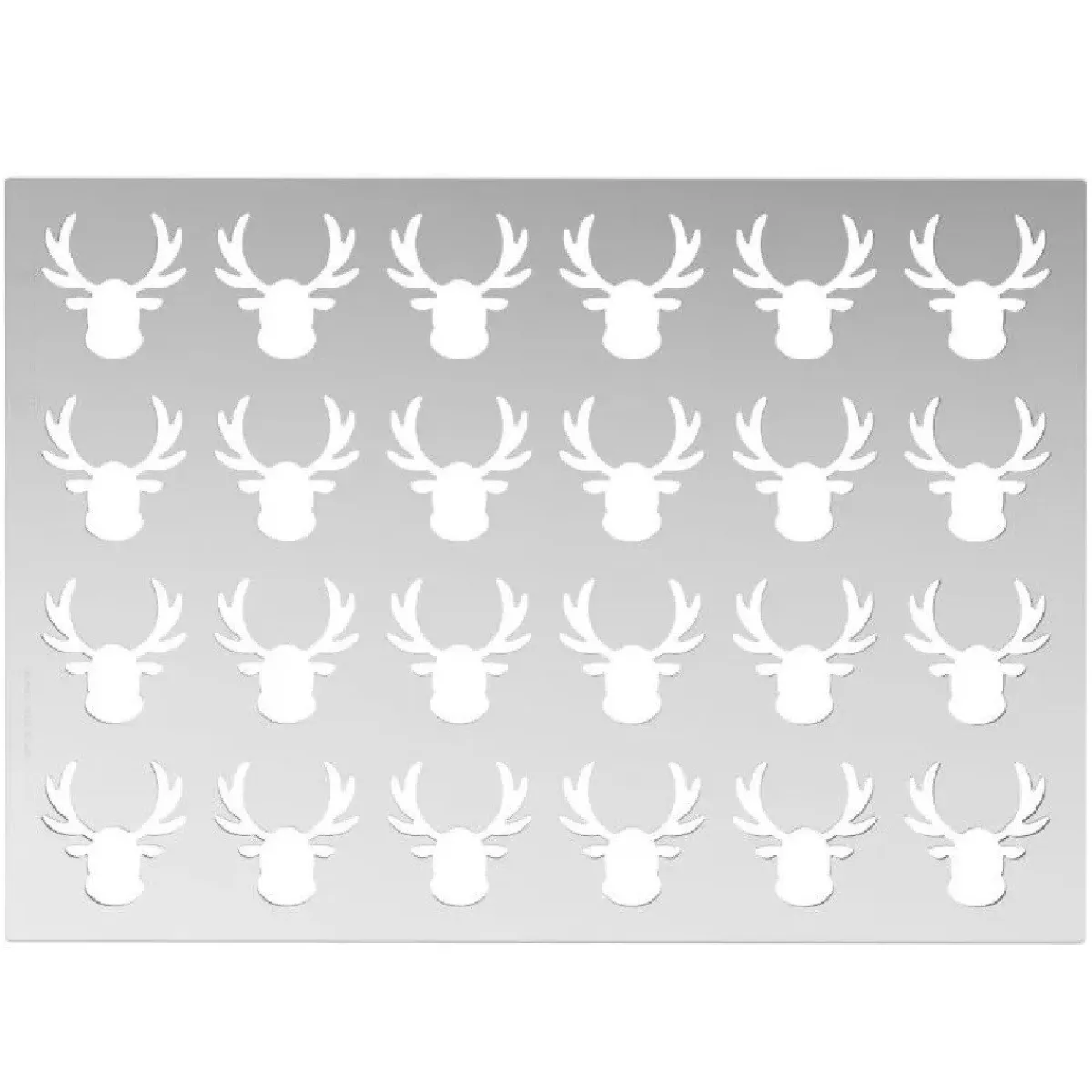 De Silikomart Siliconen Sjabloon Rudolph (24) 4x4x0,2cm is een mat gemaakt van siliconen. De siliconen vorm heeft 24 rendier sjablonen. Perfect om zelf decoraties te creëren. Giet bijvoorbeeld chocolade, caramel of isomalt in de mal en creëer fantastische versiersels. Geweldig om kerstbaksels mee af te werken.