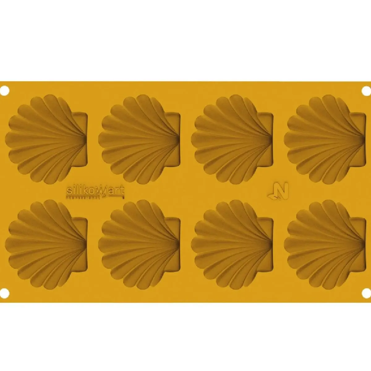 De Silikomart Siliconen Vorm Schelp (8x) 7,2×6,5×0,9cm is perfect om decoraties, baksels of desserts mee te creëren. Deze mal bevat 8 schelpvormige holtes. Elke schelp heeft een afmeting van 7,2 bij 6,5 centimeter en een hoogte van 0,9 centimeter.