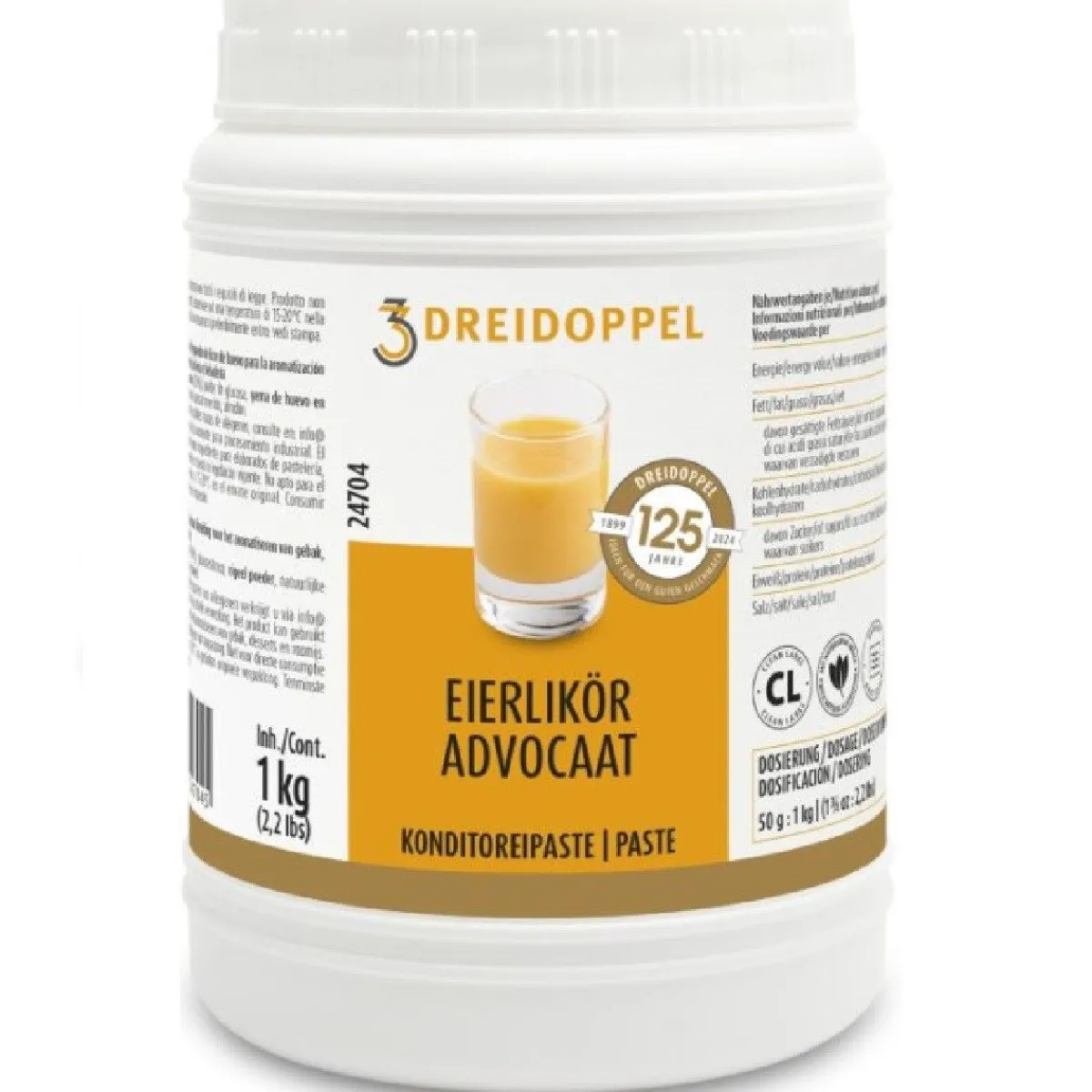 De Dreidoppel Compound Advocaat 1kg is een pasta met advocaatsmaak, waarmee je taarten, desserts en ijs op smaak kunt brengen. Lekker om kwarktaart, cheesecake of roomijs een advocaat smaak te geven. De aanbevolen dosering is 50 gram compound op 1 kilogram beslag of andere massa’s.