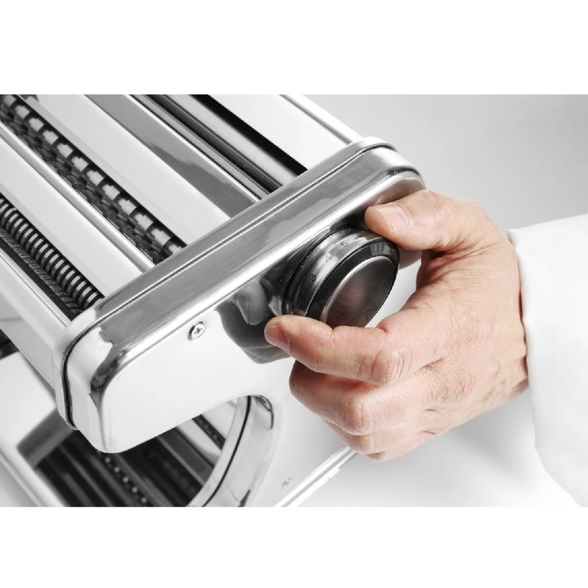 De Hendi Pastamachine Elektrisch is gemaakt van roestvrijstaal en is ideaal om zelf pasta te maken. De eigengemaakte pasta kan maximaal 17 cm breed zijn en de dikte is instelbaar. Je kunt in 7 stappen de juiste dikte bereiken, de standen gaan van 0,2 tot 2,5 mm. De machine heeft drie rollers/snijders: een deegroller, een tagliatelle snijder (6,25mm) en een fettuccine snijder (2mm).