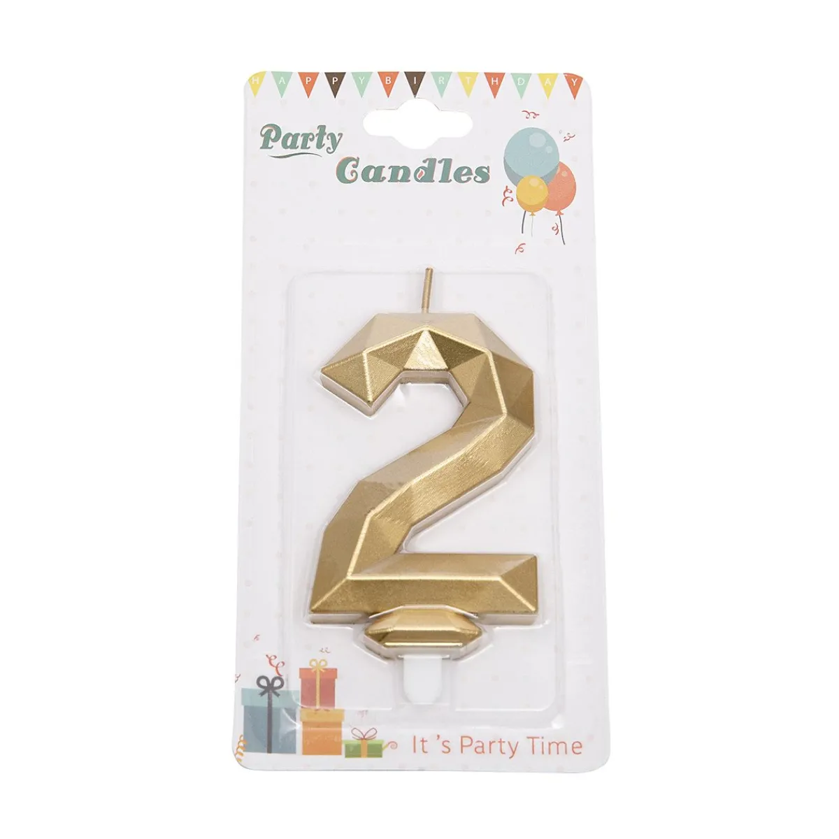 Een prachtige geografische gouden kaars met het nummer “2”. Deze kaars is perfect te gebruiken voor een gelegenheid waar een datum of leeftijd weergegeven mag worden.