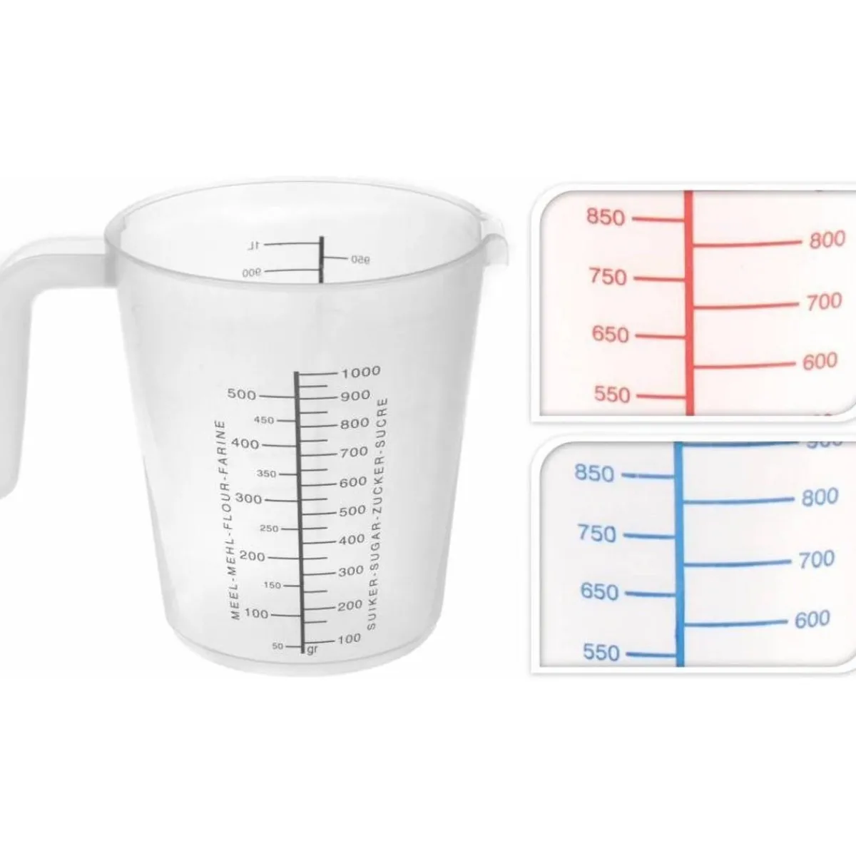 Een onmisbaar keukengereedschap is natuurlijk een maatbeker. Deze litermaat heeft een inhoud van 1 liter. Voorzien van verschillende maataanduidingen.