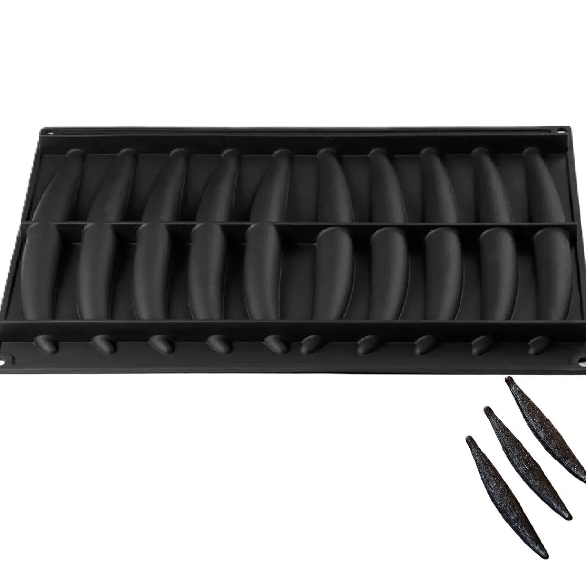 De Pavoni Siliconen Vorm Vanille 225x32mm (10) 30x40cm is ontwikkeld in samenwerking met patissier Cedric Grolet. Deze hoogwaardige siliconenvorm bevat 10 holtes van elk 22,5 centimeter lang en 3,2 centimeter breed.