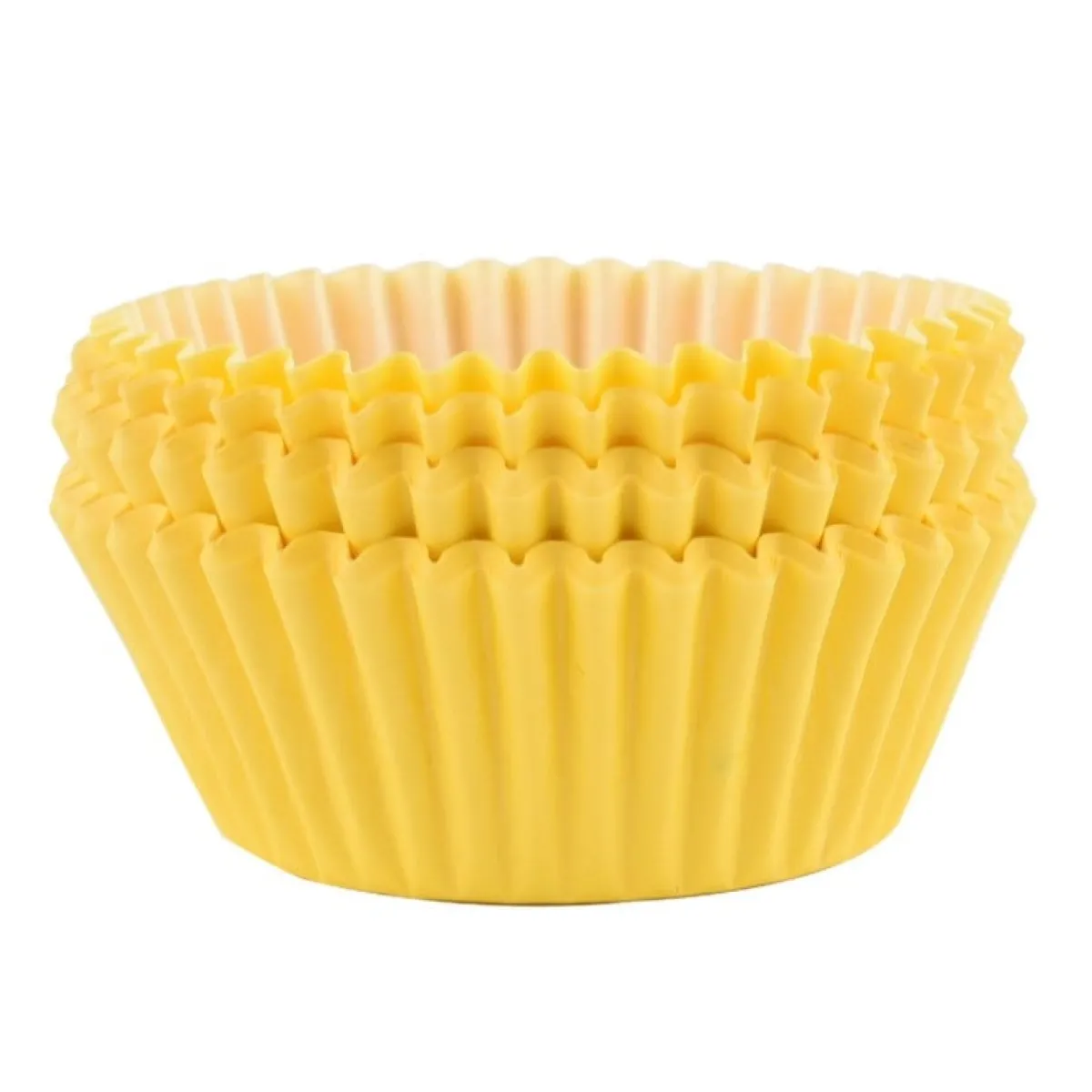 Kanariegeel, dat zijn deze cupcake cups van het merk PME. Door cupcakes te bakken in deze papieren cups zien ze er meteen vrolijkheid uit. De cups zijn gemaakt van voedselveilig papier, met een kleur die zich weerhoud in de oven (bij gebruik van basis deeg). Om de cups mooi in vorm te houden is het aan te houden een muffinbakvorm te gebruiken.