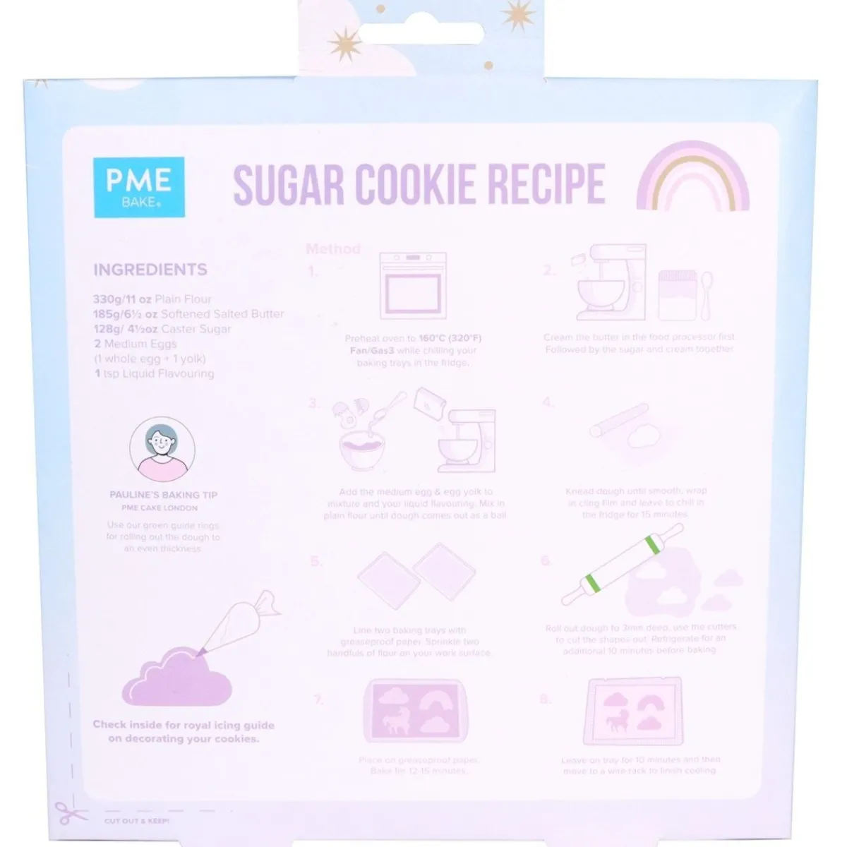 De PME Koekjes Uitsteker Unicorn Set/3 hebben 3 uitstekers in de verpakking met een unicorn thema: een regenboog, een wolk en natuurlijk een eenhoorn. De uitstekers zijn gemaakt van gepoedercoat metaal en hebben een blauwe kleur. Perfect om deeg of fondant mee uit te steken. Op de achterkant van de verpakking staat een koekjes recept voor lekkere unicorn koekjes.
