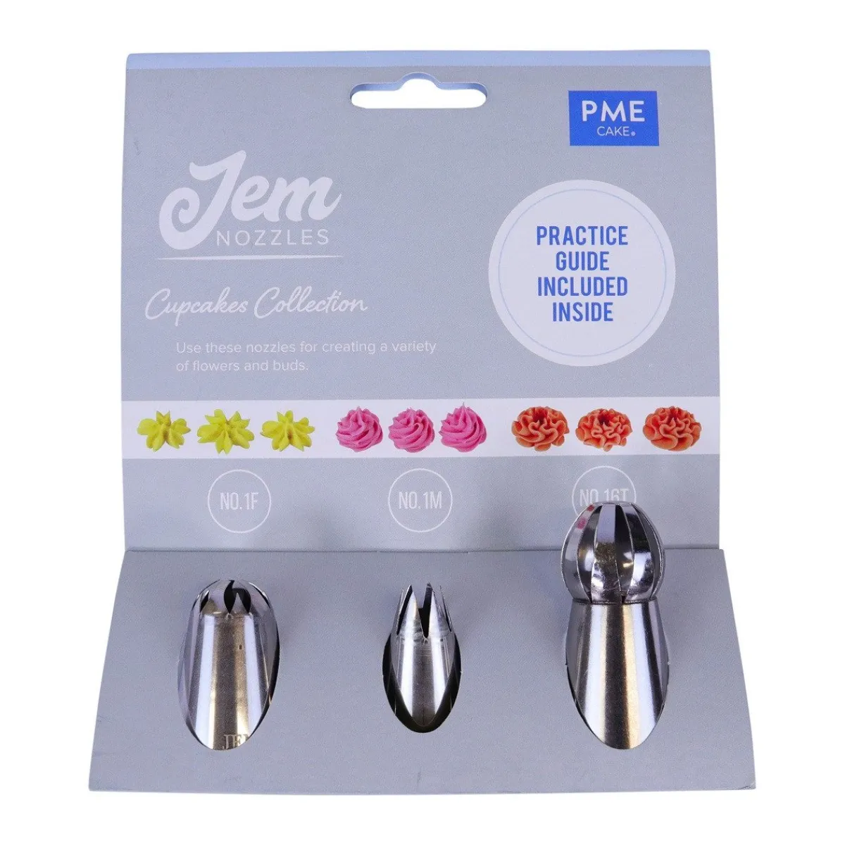 De PME Spuitmondjes Cupcakes Set/3 bestaat uit 3 verschillende spuitmondjes. Met elk spuitmondje kun je weer een ander resultaat krijgen. Door deze spuitmondjes te gebruiken, wordt het onder andere veel eenvoudiger om mooie toeven crème op cupcakes spuiten.