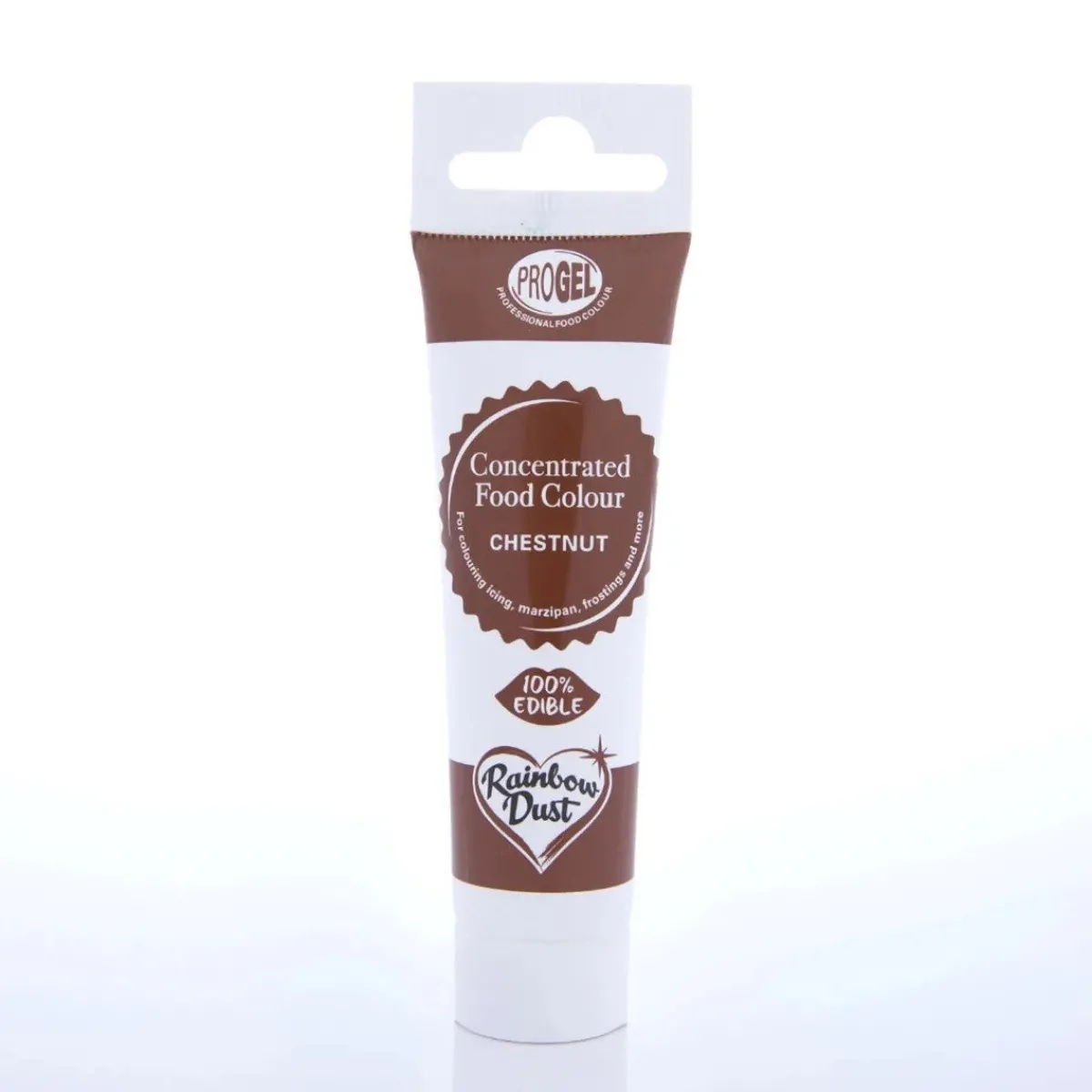 Mooi kastanjebruine ProGel van Rainbow Dust, dé manier voor het kleuren van voedsel. Door zijn hoge concentratie is een kleine hoeveelheid kleurgel genoeg om een rijke, diepe kleur te geven aan jouw baksel. Gebruik deze kleurstof gel in combinatie met onder andere fondant, marsepein en biscuitmixen. Binnen no-time heb je deze producten in de gewenste kleur!